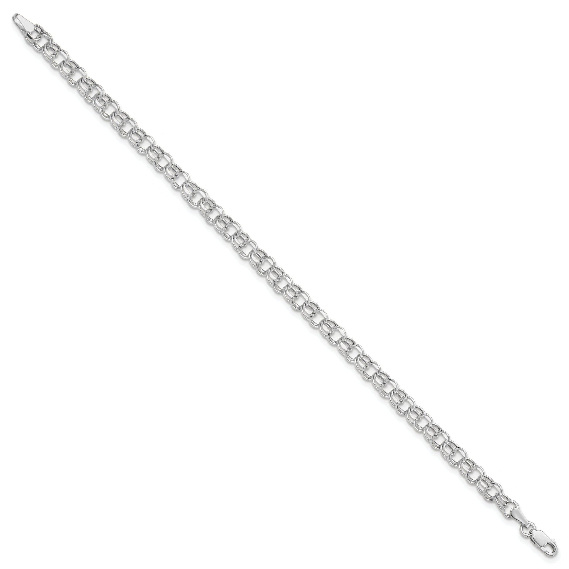 Introducing the 10K White Gold 6-Inch 4.5mm Hollow Dia-Cut Double Link Charm Bracelet, a dazzling addition to any fine jewelry collection. Crafted with polished 10K white gold, this bracelet shines with elegance and sophistication. Its 6-inch open link chain, with a 4.5mm width, showcases exquisite diamond-cut texture for a touch of sparkle. Designed for both men and women, this unisex piece effortlessly elevates any outfit. The durable lobster clasp ensures secure wear. Adorn your wrist with this stunning 10K White Gold 6-Inch 4.5mm Hollow Dia-Cut Double Link Charm Bracelet and embrace timeless style.