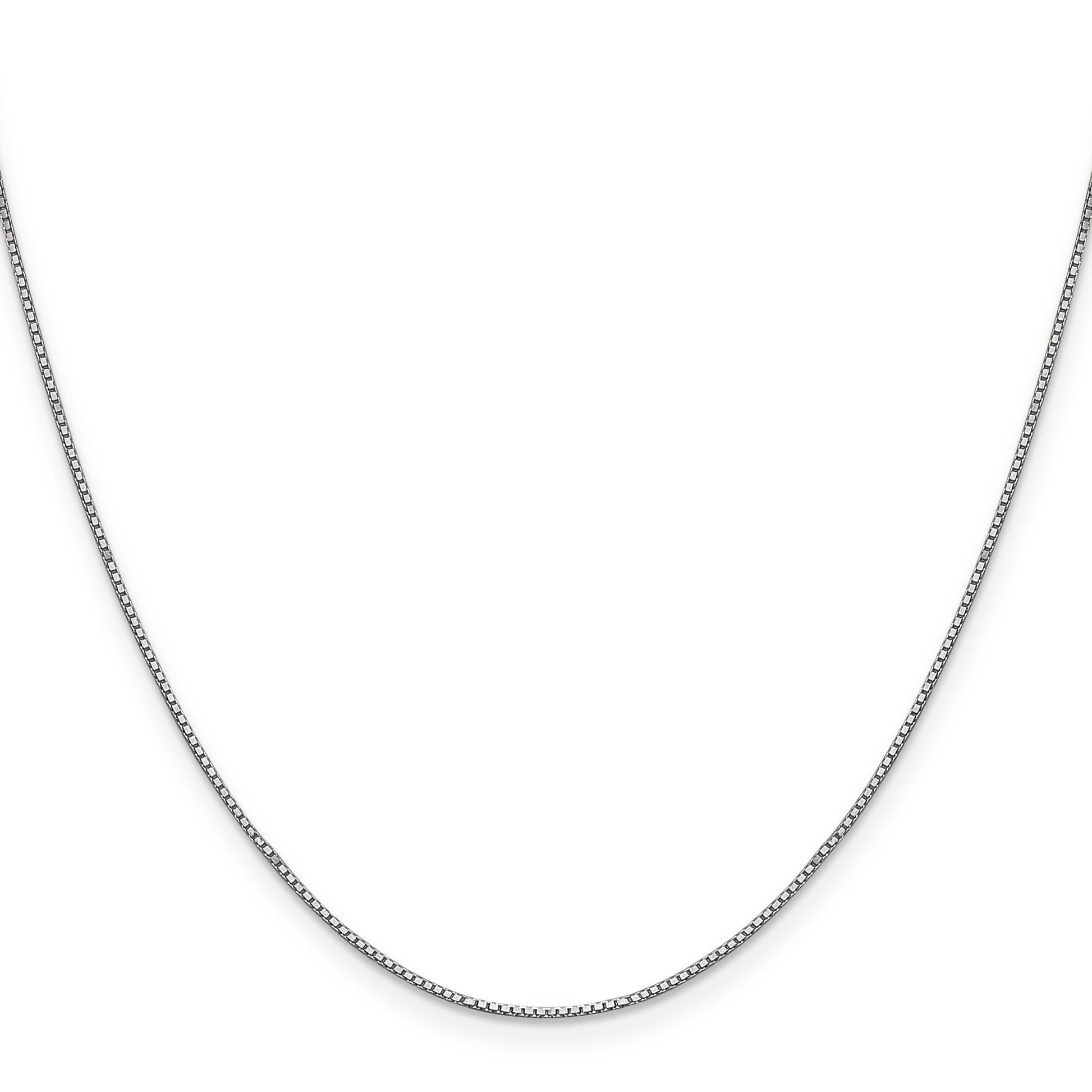 The 10K White Gold .8mm Box Chain Necklace is a sleek piece perfect for any style. Crafted from solid 10K gold, it features a polished finish that shines bright. The chain measures 22 inches long and has a sturdy lobster clasp for easy wear. Its simple box design makes it versatile for everyday use or layering with other jewelry. Rhodium plating adds extra shine and durability, making this necklace a lasting choice. Whether for yourself or as a gift, the 10K White Gold .8mm Box Chain Necklace offers quality and style all in one.