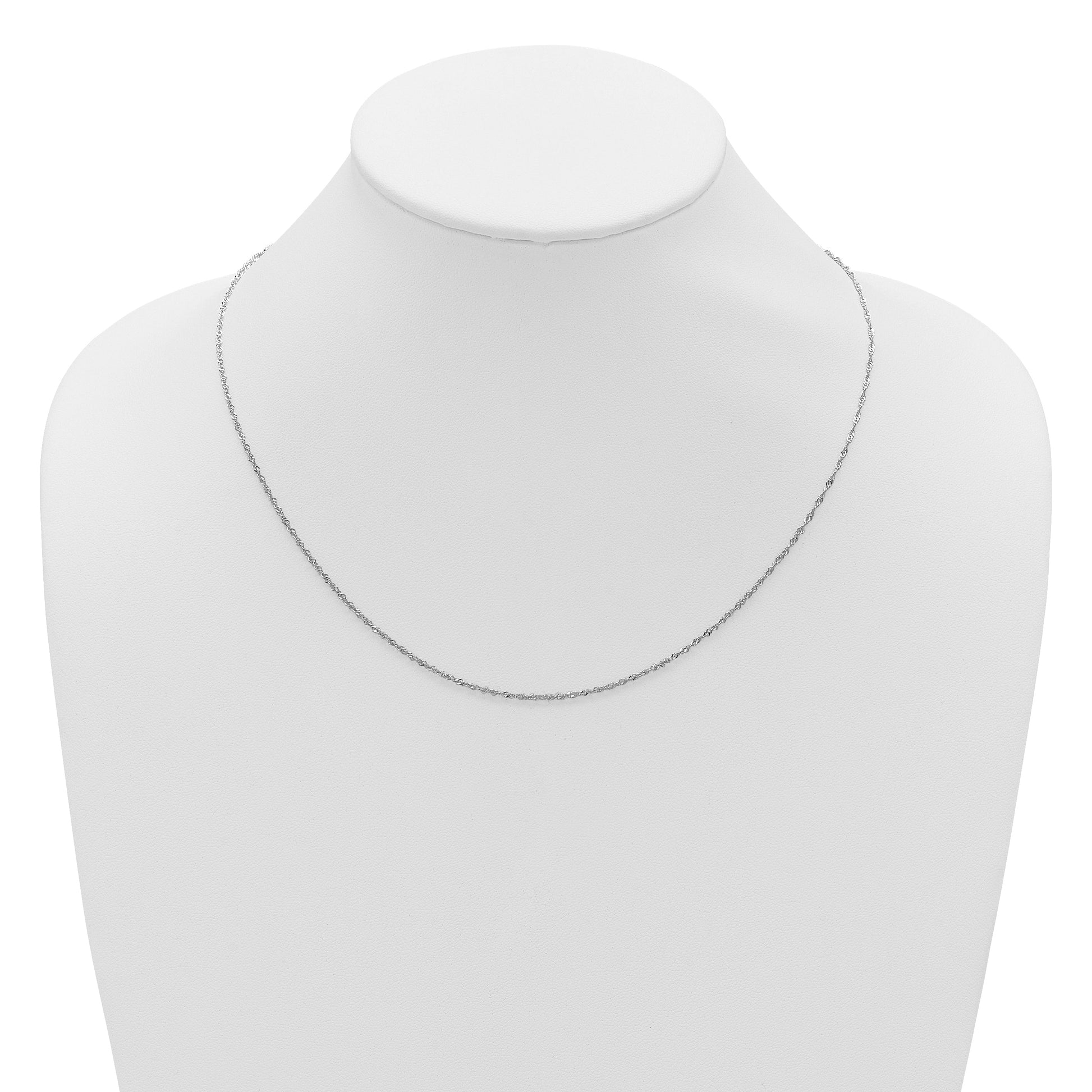 Introducing the 10K White Gold 10K Adjustable 1.3mm Singapore Chain, a sleek piece perfect for everyday wear. Crafted from 10K gold with a polished finish, this necklace offers durability and shine. Its 22-inch length makes it versatile and easy to style with any outfit. The delicate 1.3mm width adds a subtle touch of elegance. The chain features an adjustable design and a secure lobster clasp, ensuring a comfortable fit. Plus, it’s rhodium-plated for extra protection. With a lifetime guarantee, the 10K White Gold 10K Adjustable 1.3mm Singapore Chain is a reliable choice for both men and women.