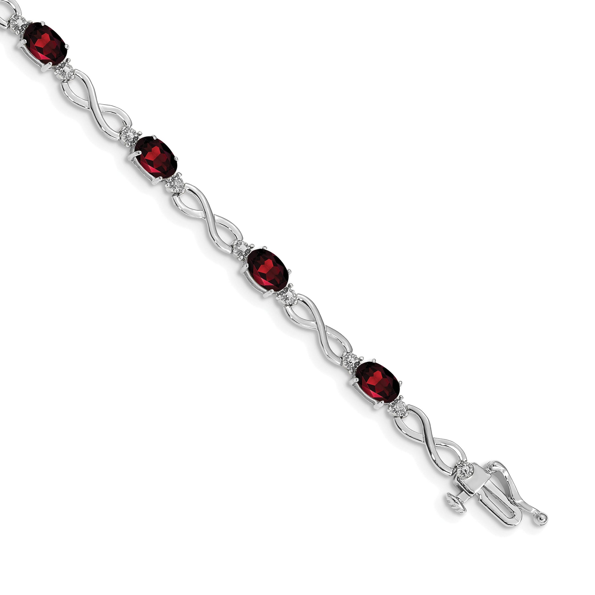 10K White Gold Garnet And Diamond Infinity Bracelet