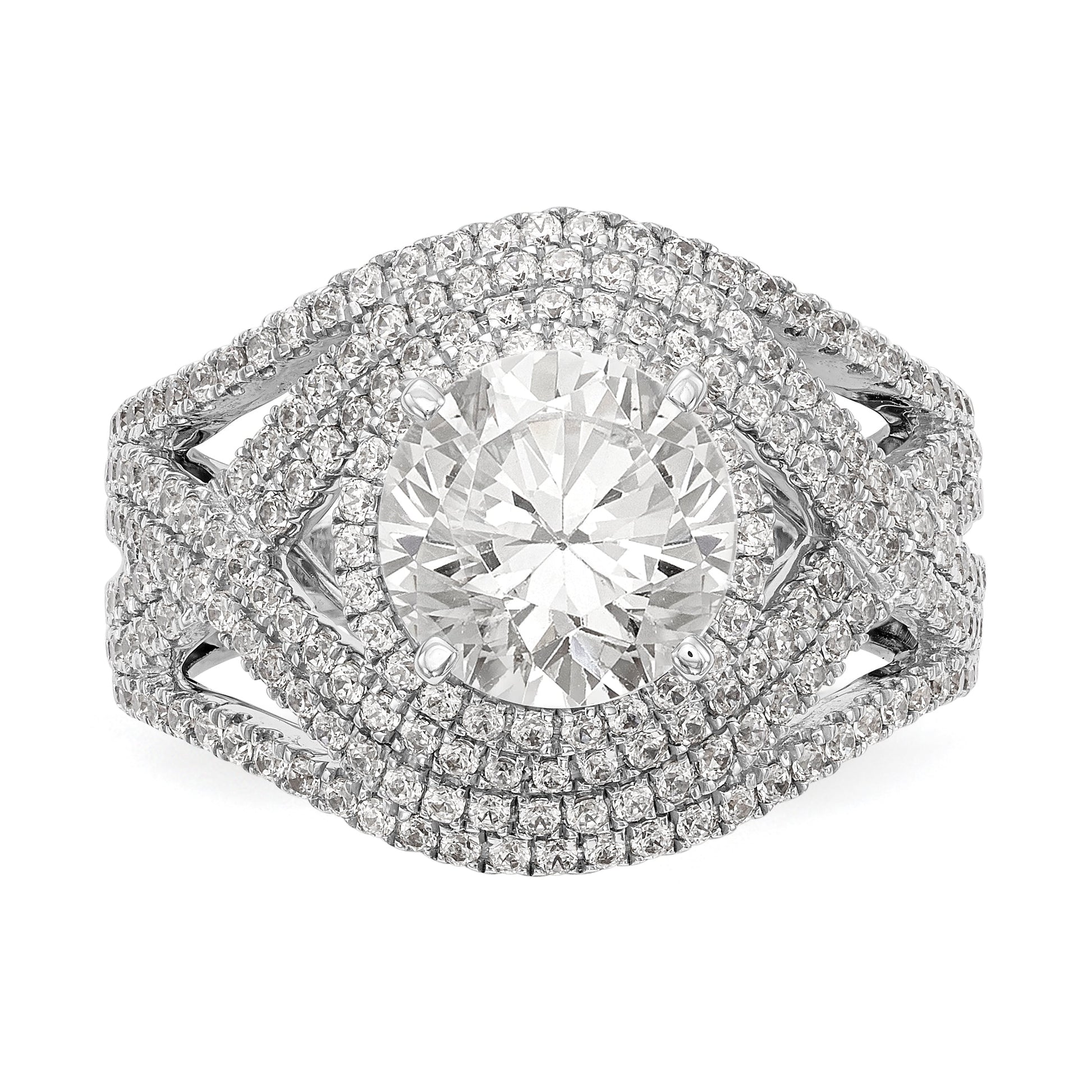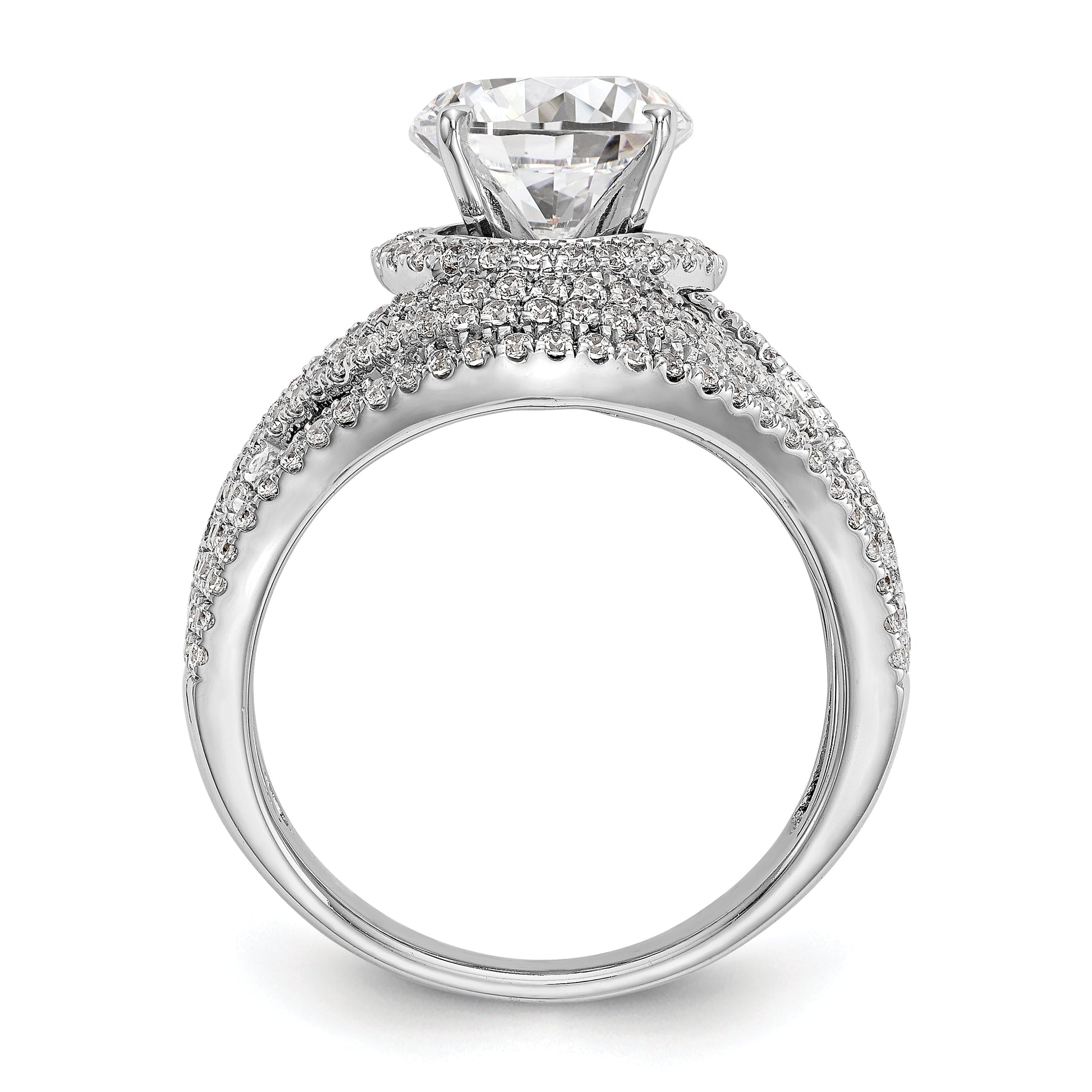 14K White Gold Peg Set Simulated Diamond Halo Engagement Ring