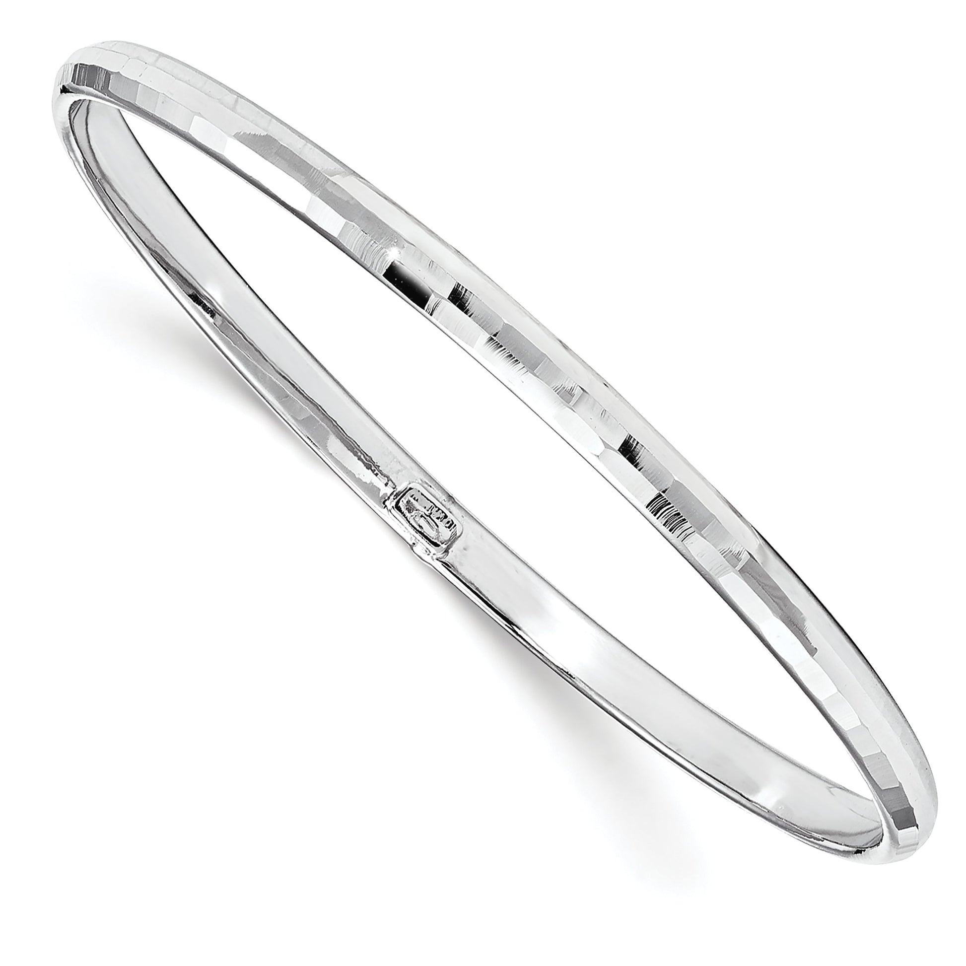 The 10K White Gold Polished Bangle is a must-have for any fine jewelry collection. Crafted from 10K gold, this stunning bangle features a rhodium plating for extra shine. It boasts a polished finish and a sleek, hollow design that makes it lightweight and comfortable for daily wear. With a length of 7 inches and a width of 4.25 mm, it slips on effortlessly without a clasp. This elegant piece comes with a lifetime guarantee, ensuring it remains a cherished accessory for years to come. Add the 10K White Gold Polished Bangle to your collection and shine with timeless elegance.