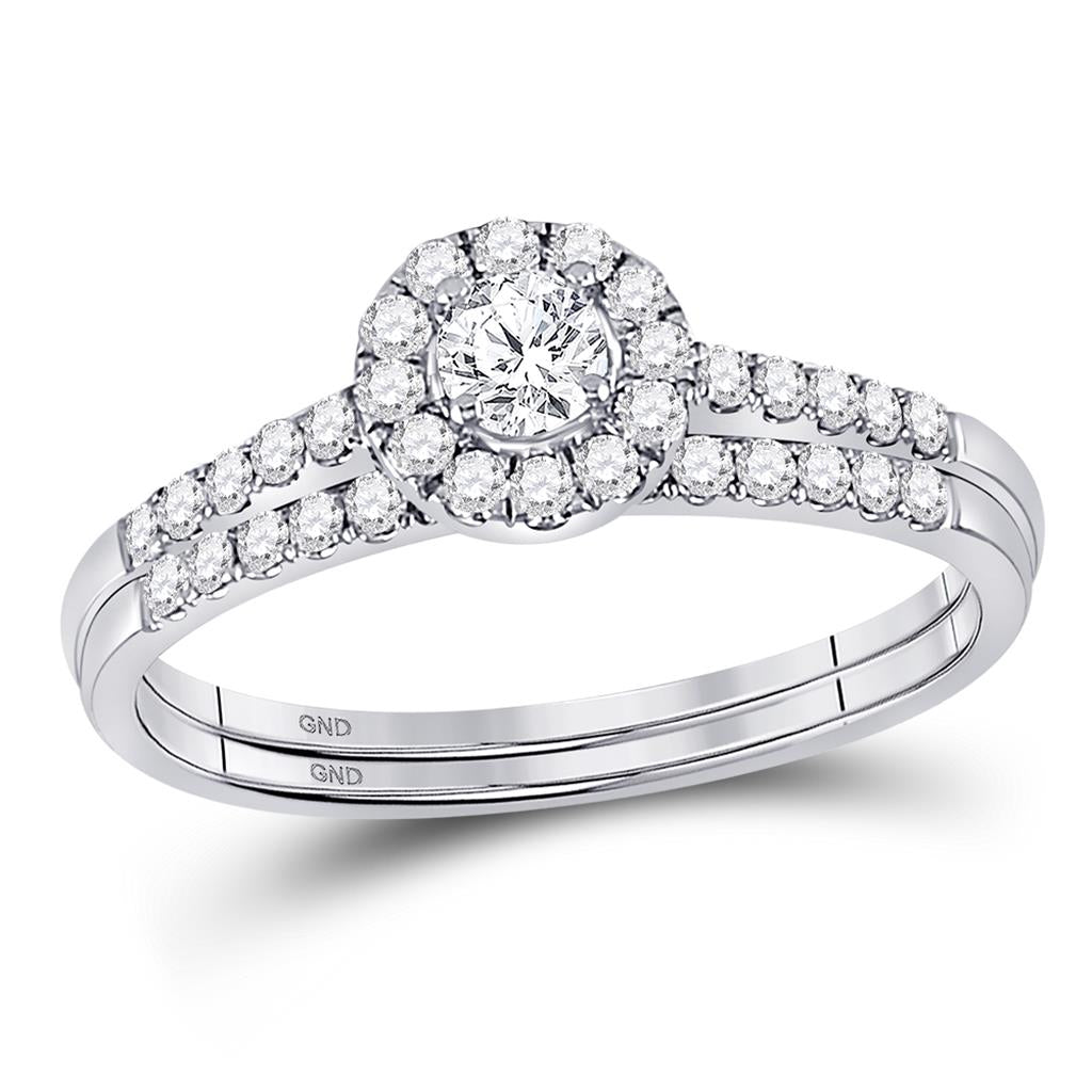 14k White Gold Round Diamond Bridal Wedding Ring Set 1/2 Cttw