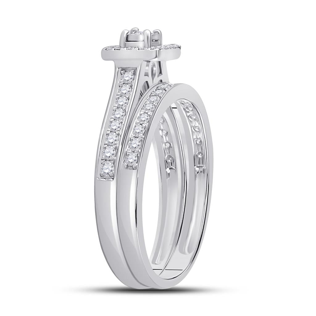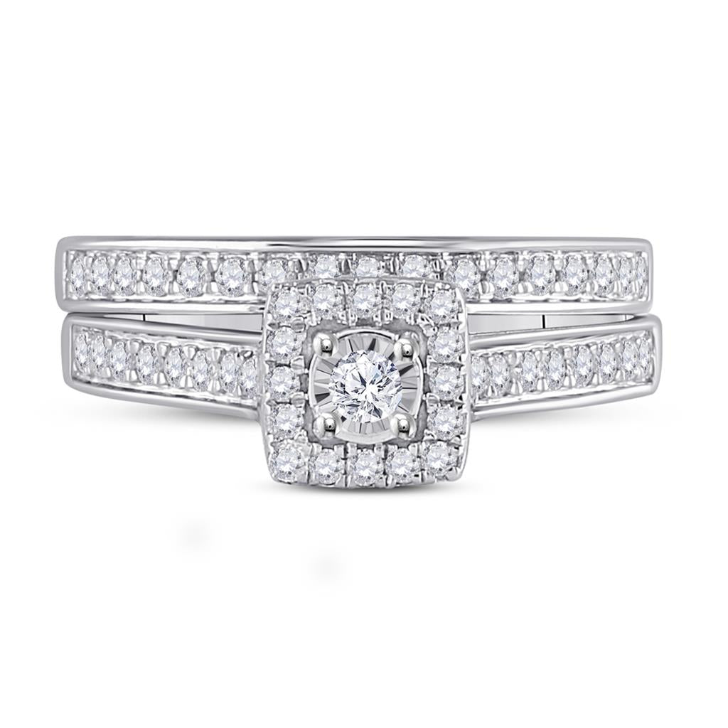 14k White Gold Round Diamond Halo Bridal Wedding Ring Set 1/2 Cttw