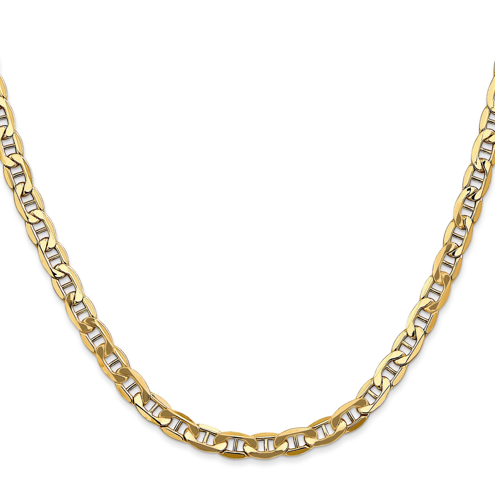 Say hello to timeless elegance with our 10K Yellow Gold 4.75mm Semi-Solid Anchor Chain. This necklace, crafted from pure 10K gold, promises a rich hue and polished finish. Spanning 24 inches, it’s just the right length to make a statement. The anchor design adds a nautical touch, while the semi-solid build combines strength and style. A lobster clasp keeps it secure, making it perfect for any gender. Manufactured through expert casting and machine-made precision, this chain brings sophistication to the daily grind. Elevate your jewelry collection with the 10K Yellow Gold 4.75mm Semi-Solid Anchor Chain today.
