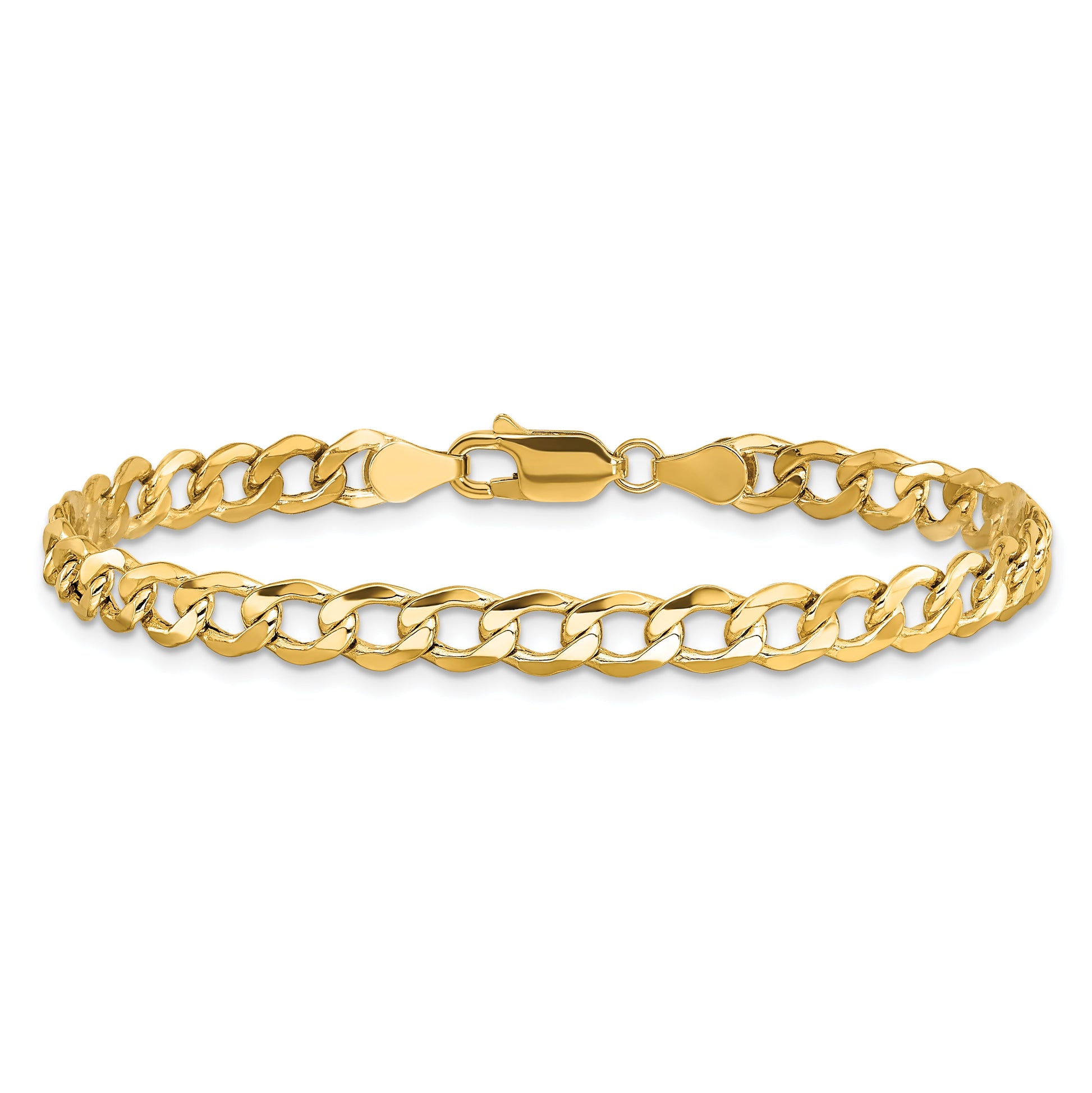 Introducing the 10k Yellow Gold 5.25mm Semi-Solid Curb Link Chain— a stunning piece of fine jewelry. Crafted from 10k gold, it gleams with a polished finish. Measuring 8 inches in length, this chain bracelet features a robust lobster clasp for secure wear. With its semi-solid construction, it combines durability and elegance. The 5.25mm curb links offer a classic yet bold look. Expertly casted and machine-made, this bracelet is a timeless accessory. Elevate your style with the 10k Yellow Gold 5.25mm Semi-Solid Curb Link Chain.