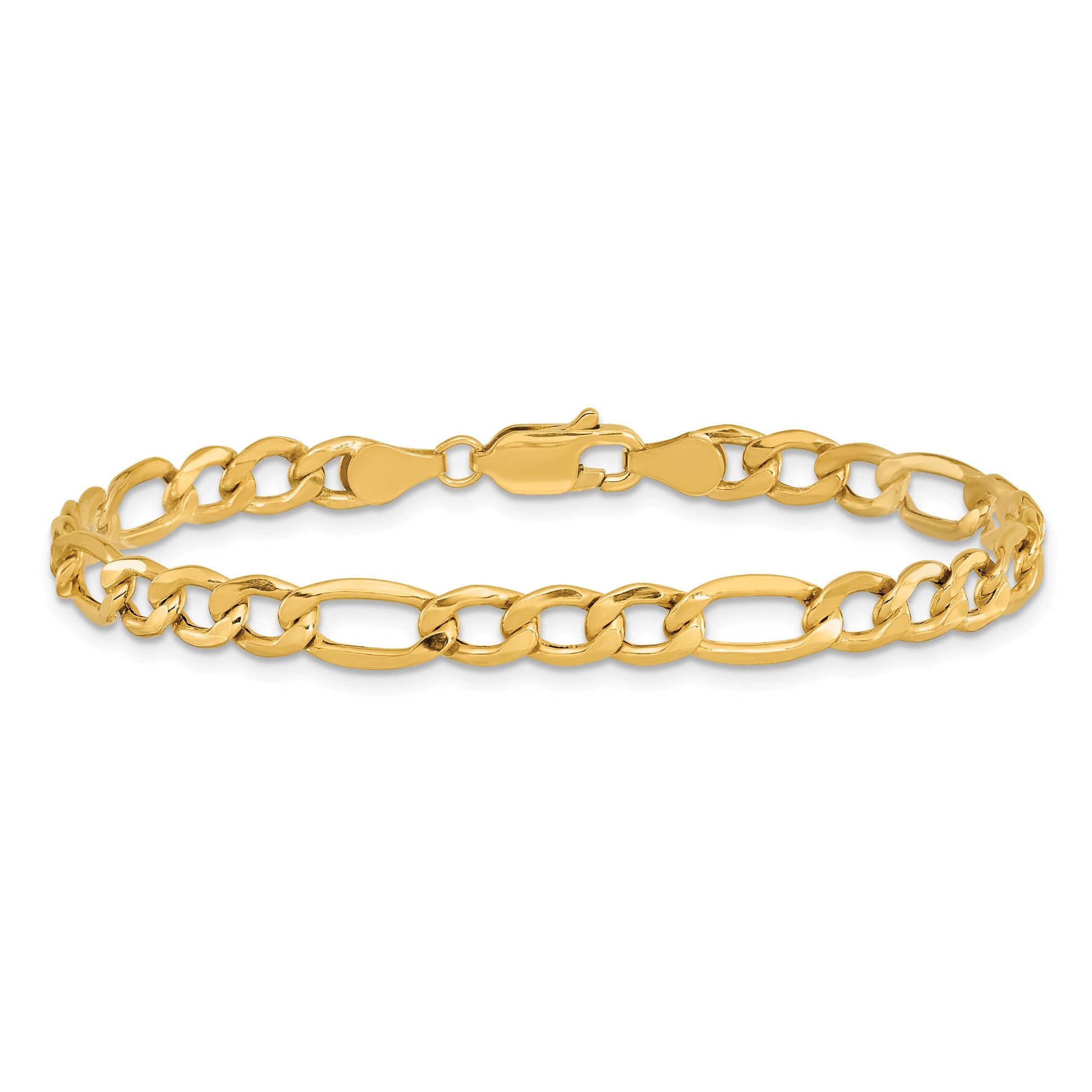 Unveil timeless elegance with our 10k Yellow Gold 5.35mm Semi-Solid Figaro Chain Bracelet. Made from polished 10k gold, this bracelet captures classic sophistication. The Figaro chain design, with a width of 5.35mm, offers both durability and style. A secure lobster clasp ensures it stays in place, adding a touch of luxury to any outfit. Perfect for daily wear or special occasions, this casted, machine-made piece stands out. Embrace the blend of strength and beauty with our 10k Yellow Gold 5.35mm Semi-Solid Figaro Chain Bracelet.