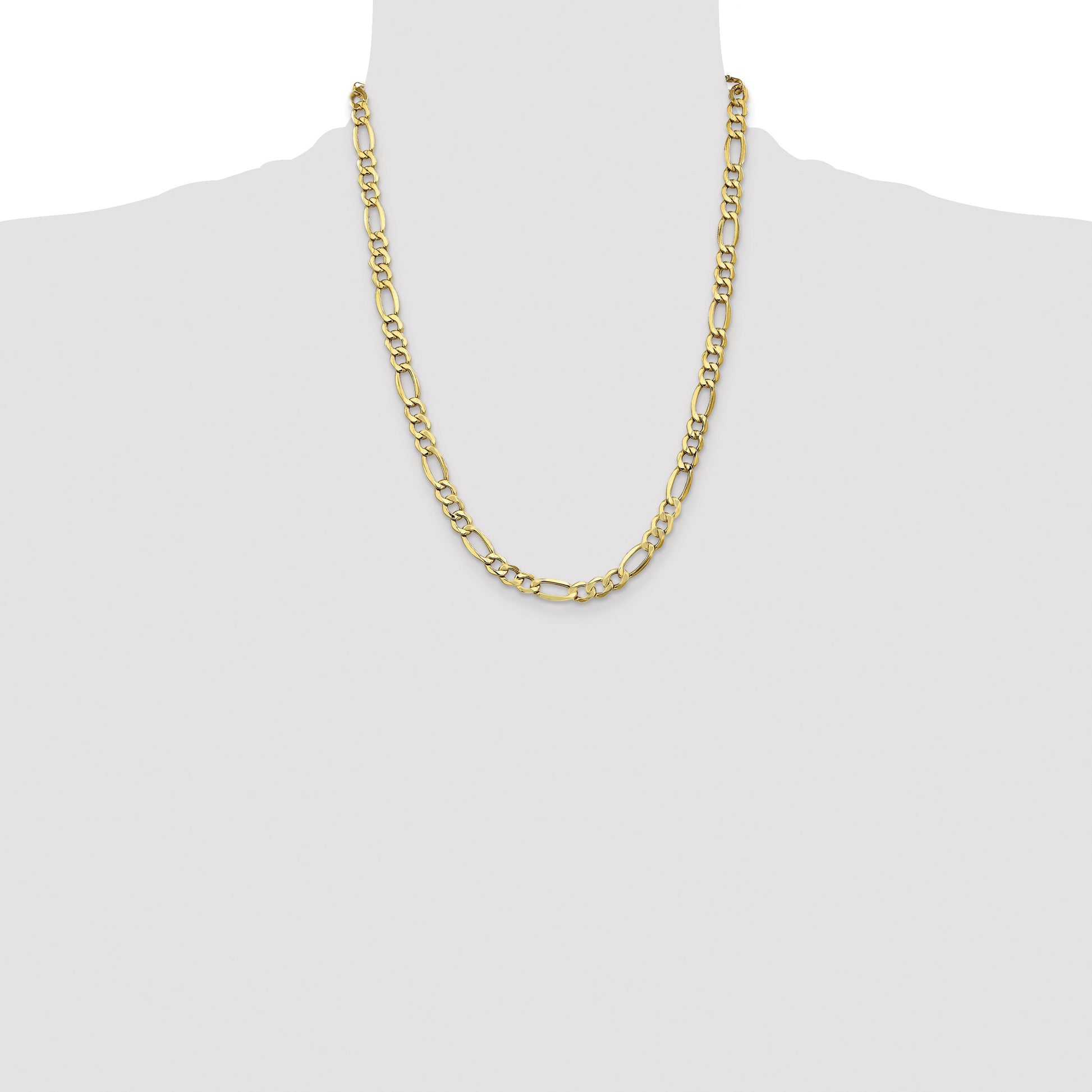 Indulge in timeless elegance with our 10k Yellow Gold Figaro Chain. Crafted meticulously from 10k yellow gold, this 7.3mm wide chain exudes a rich polished finish that gleams under any light. The semi-solid construction ensures a perfect balance between durability and weight, making it ideal for everyday wear. Measuring 22 inches in length, it drapes gracefully around the neck, secured by a reliable lobster clasp. The machine-made, casted design showcases the classic Figaro style, enhancing both casual and formal looks. Elevate your jewelry collection with this exquisite 10k Yellow Gold Figaro Chain.