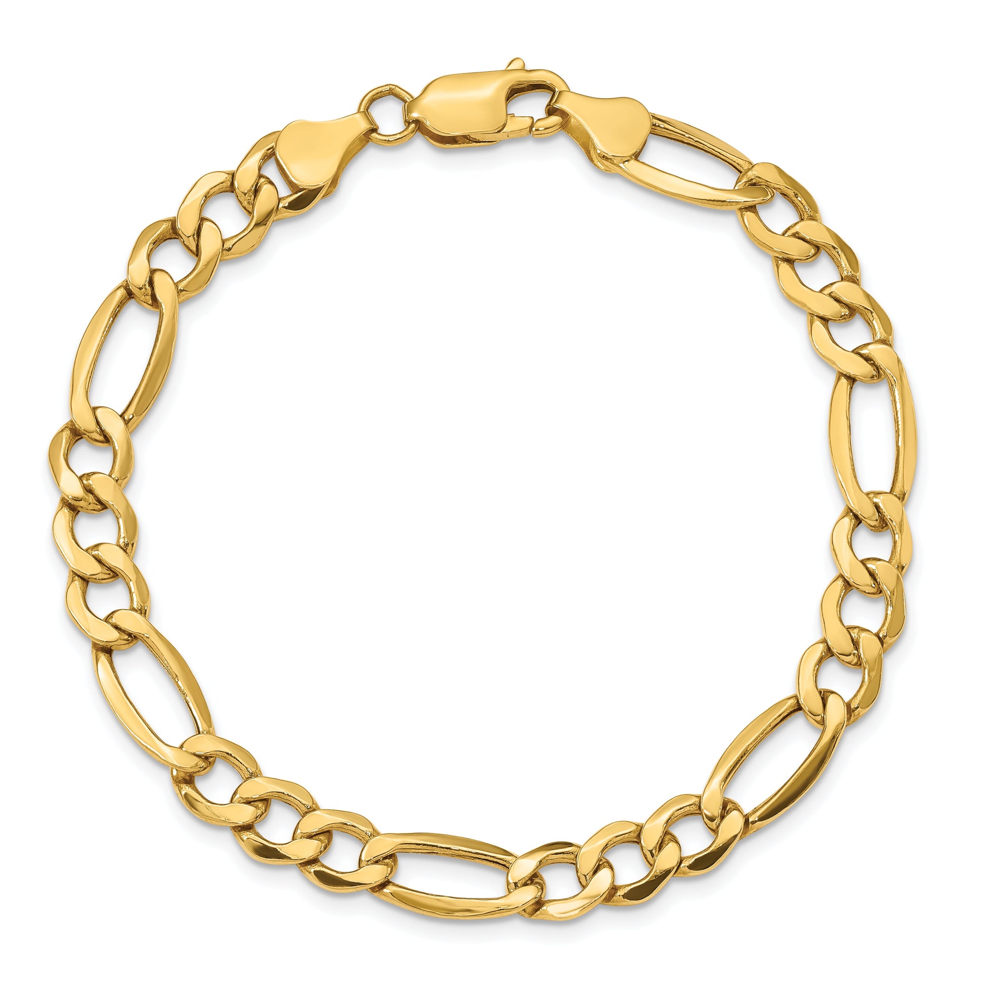 Discover timeless elegance with our 10k Yellow Gold 7.3mm Semi-Solid Figaro Chain Bracelet. This stunning piece, polished to perfection, showcases a 7-inch length adorned with a sleek Figaro chain design. Crafted from high-quality 10k yellow gold, its semi-solid structure ensures durability without compromising flexibility. The bracelet boasts a convenient lobster clasp, offering both security and ease of wear. Machine made and meticulously casted, this jewelry piece reflects sophisticated craftsmanship. The 10k Yellow Gold 7.3mm Semi-Solid Figaro Chain Bracelet is a must-have for any refined jewelry collection.