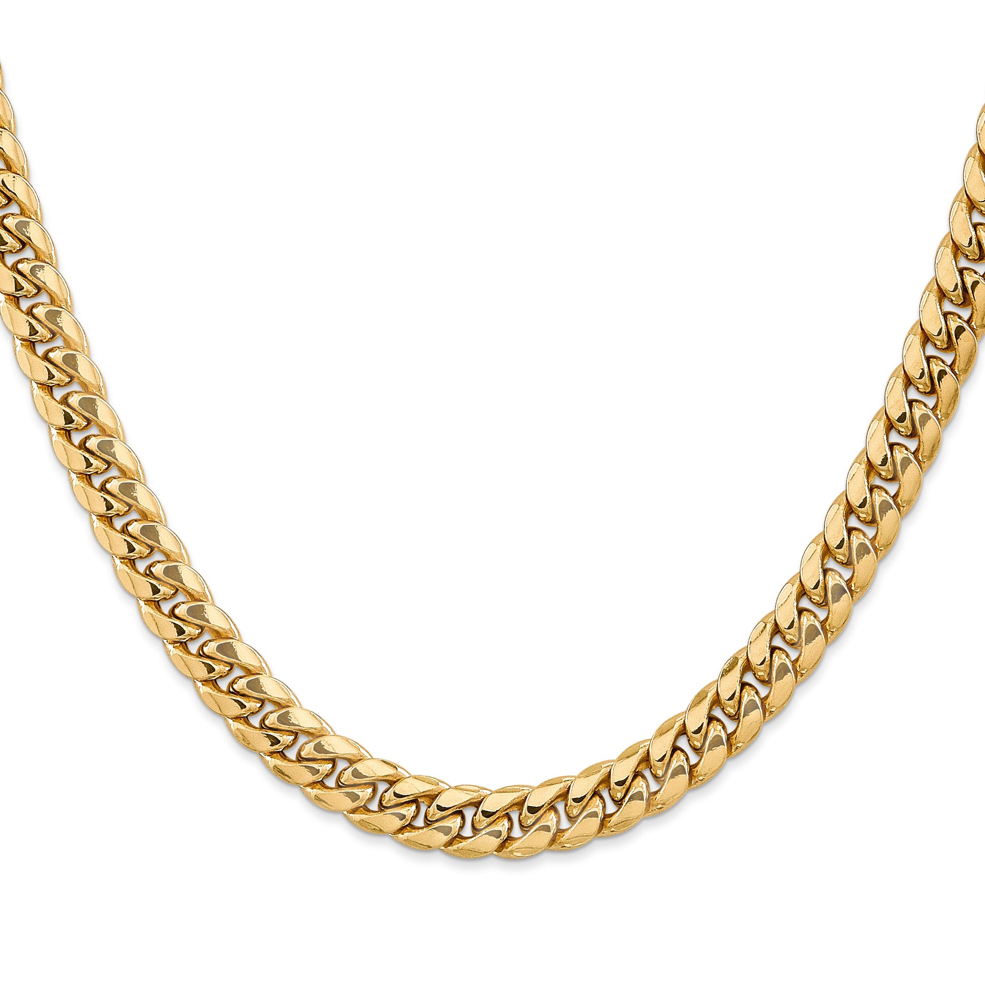26 Inch 10k Yellow Gold 7.3mm Semi-Solid Miami Cuban Chain Necklace