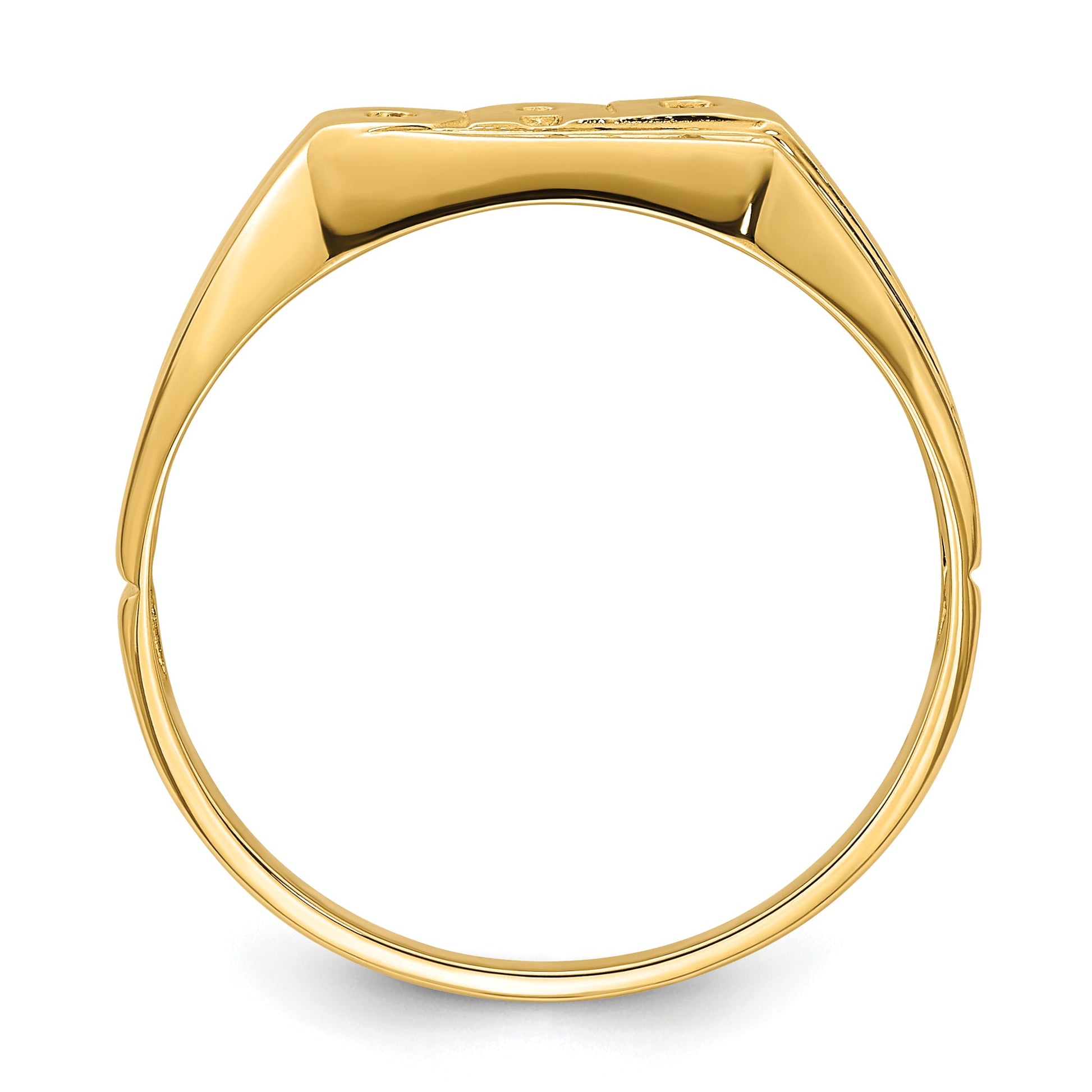 The 10K Yellow Gold with 10K AA Diamond Men's Ring exudes timeless elegance fit for the modern gentleman. Crafted from polished, high-quality 10K yellow gold, this ring features two dazzling white diamonds. Each round, faceted diamond displays a clear I1 clarity, in an understated 0.004 carat weight. The tapered band, ranging from 2 to 8 mm, offers a bold yet comfortable fit, adjustable between sizes 8 to 12 in 0.25 increments. The natural brilliance of this ring makes it a perfect accessory for any occasion. Wear the 10K Yellow Gold with 10K AA Diamond Men's Ring to showcase your refined style.