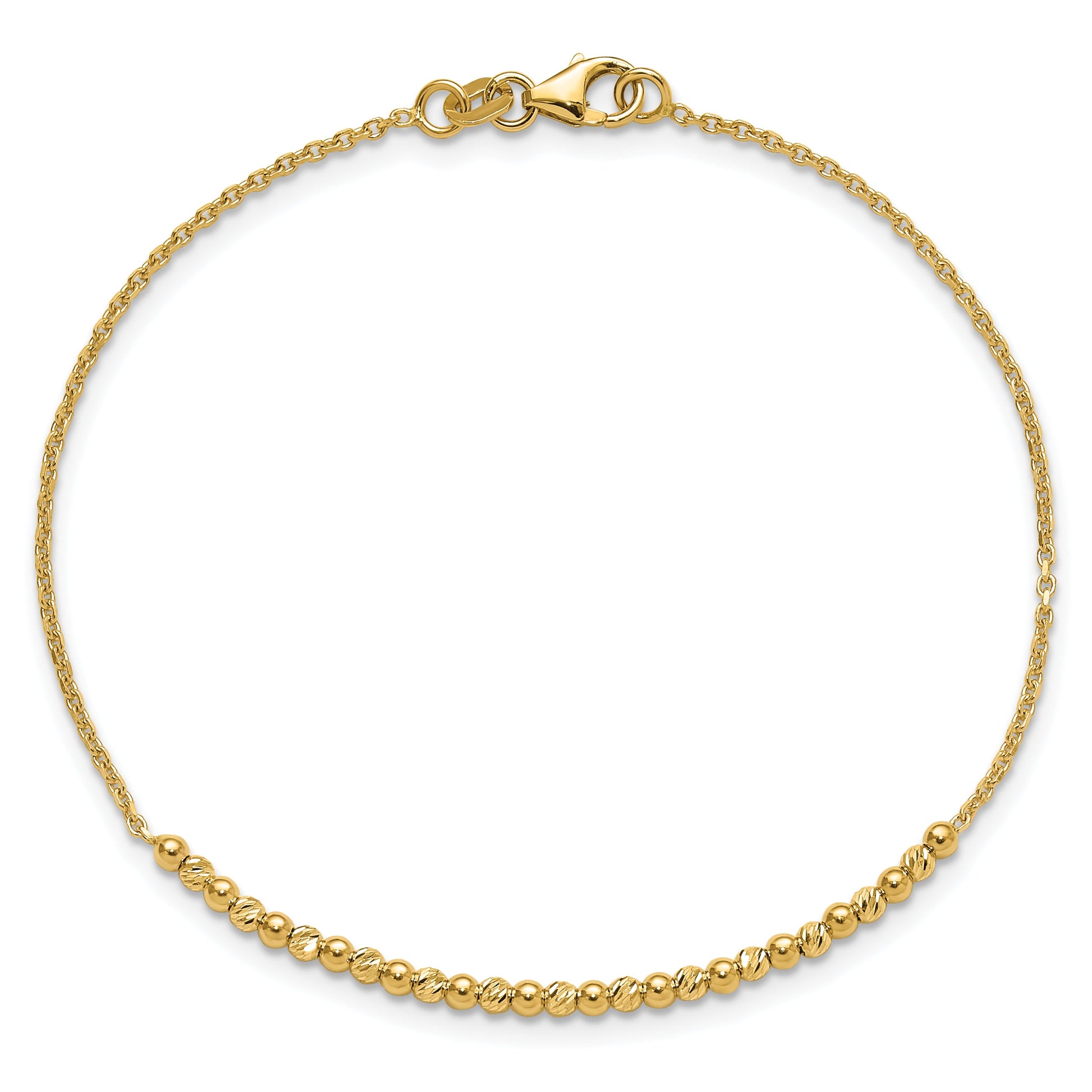 The 10K Yellow Gold Diamond-Cut Beaded 7.5-Inch Bracelet is a must-have for anyone who loves timeless elegance. Made from 10K yellow gold, this bracelet shines with a polished finish that catches the eye. Its diamond-cut design adds a touch of sparkle, while the ball beaded chain gives it a classic look. Measuring 7.5 inches in length and 2mm in width, it's the perfect fit for most wrists. The fancy lobster clasp ensures it stays secure all day. Add a touch of class to any outfit with this stunning 10K Yellow Gold Diamond-Cut Beaded 7.5-Inch Bracelet.