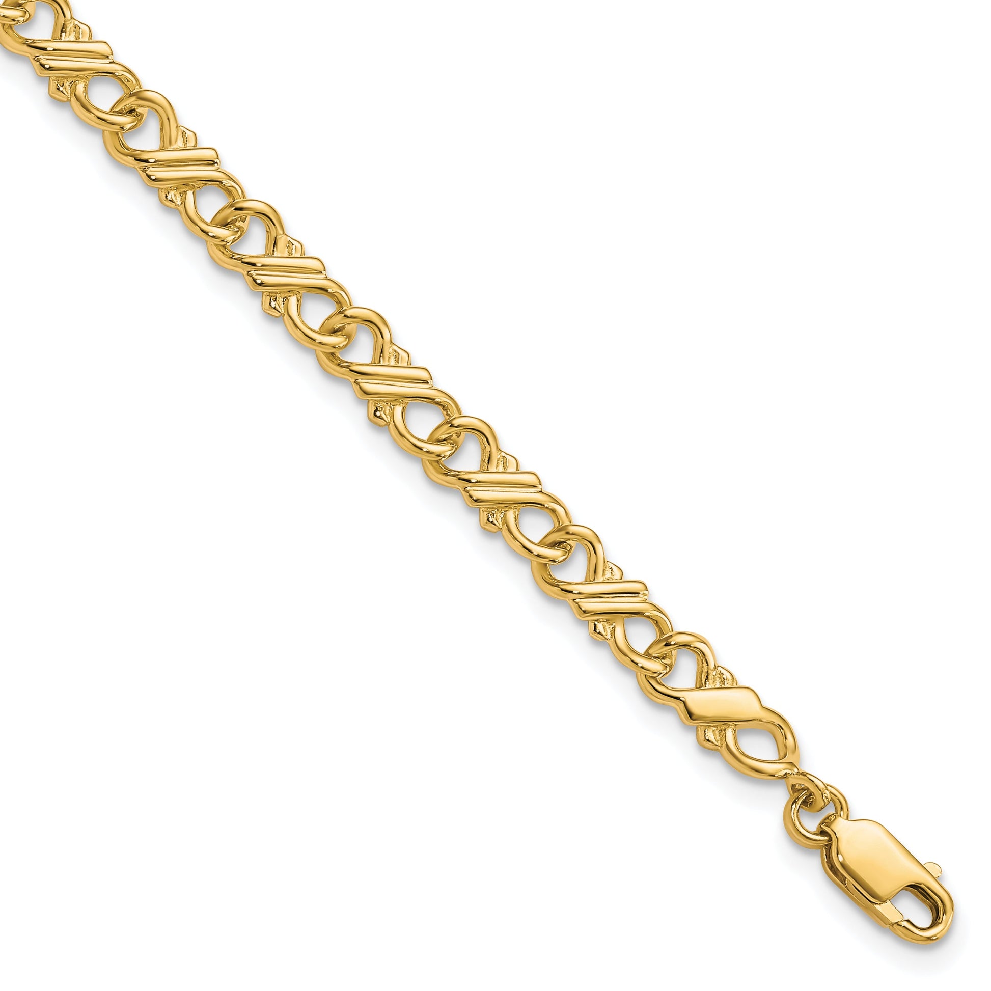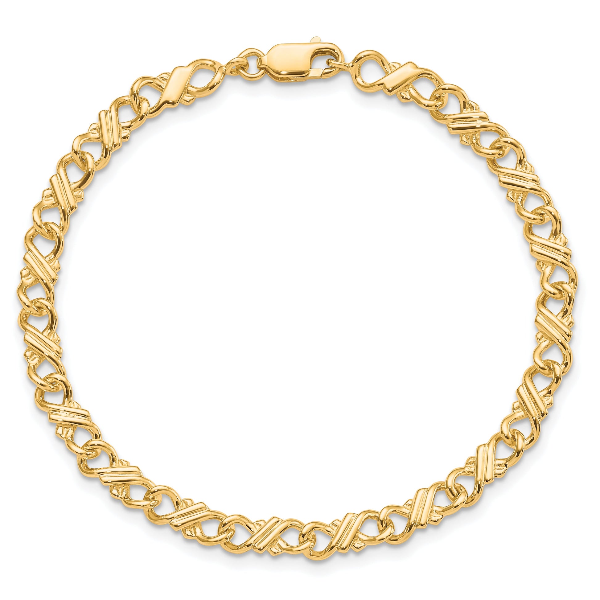 Discover the elegance of our 10k Yellow Gold 10k Solid Polished Fancy Bracelet. This stunning piece is crafted from 10k gold, featuring a polished finish that gleams with every move. At 7 inches long and 4.25 mm wide, it fits comfortably while exuding pure sophistication. The fancy chain type and solid construction promise durability and lasting beauty. A secure lobster clasp ensures it stays perfectly in place. Elevate any outfit with the 10k Yellow Gold 10k Solid Polished Fancy Bracelet, a timeless addition to your collection.