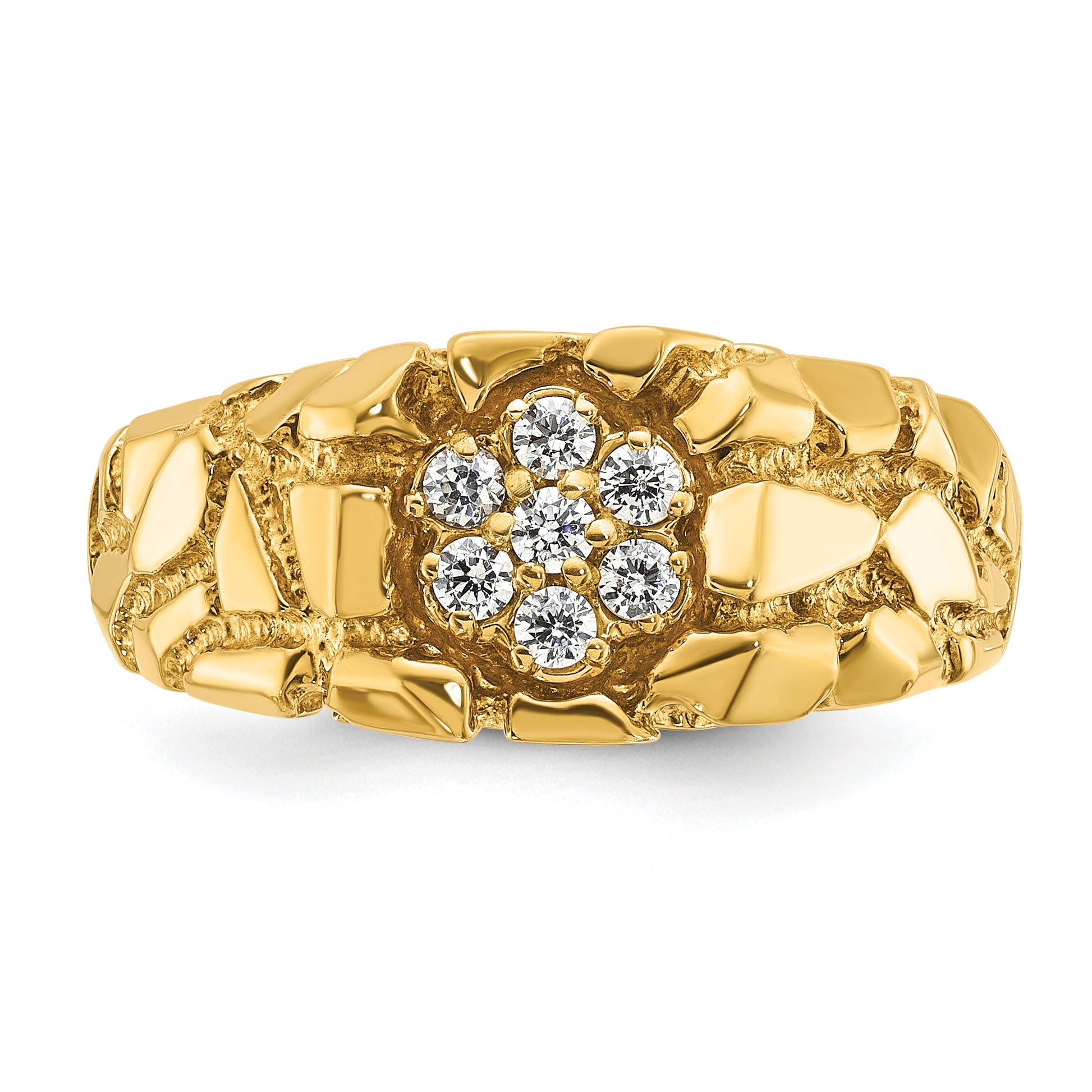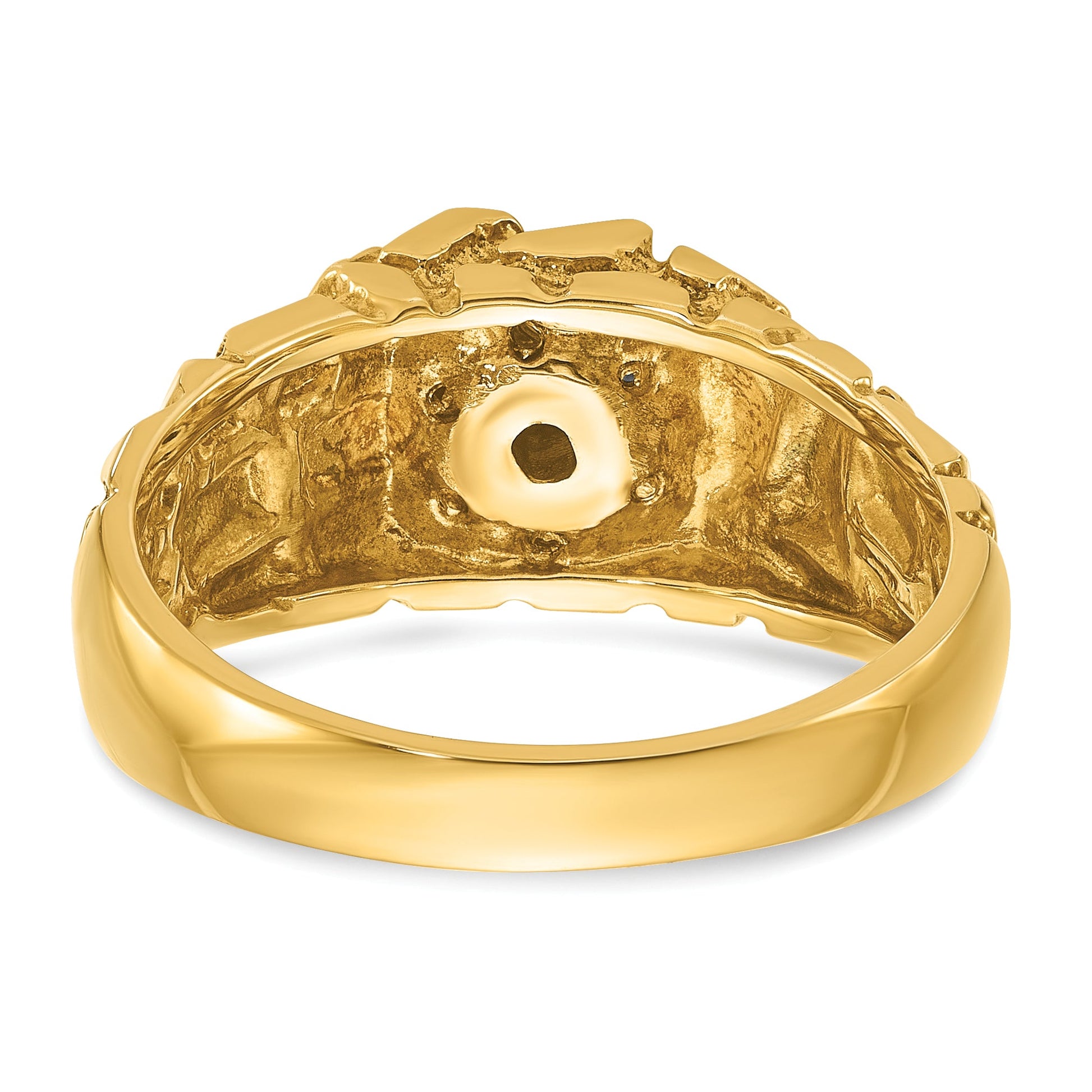 Introducing the 10K Yellow Gold Fancy Ring Mounting, a striking piece that every man deserves. Crafted from premium 10K gold, this men's ring showcases a refined polished finish, adding an elegant touch to any ensemble. The primary color, yellow gold, radiates classic sophistication and style. Its sturdy setting is designed to hold a gemstone of your choice, making it a perfect selection for those who appreciate unique and timeless jewelry. Each 10K Yellow Gold Fancy Ring Mounting is sold individually, allowing you to personalize and make it truly yours.