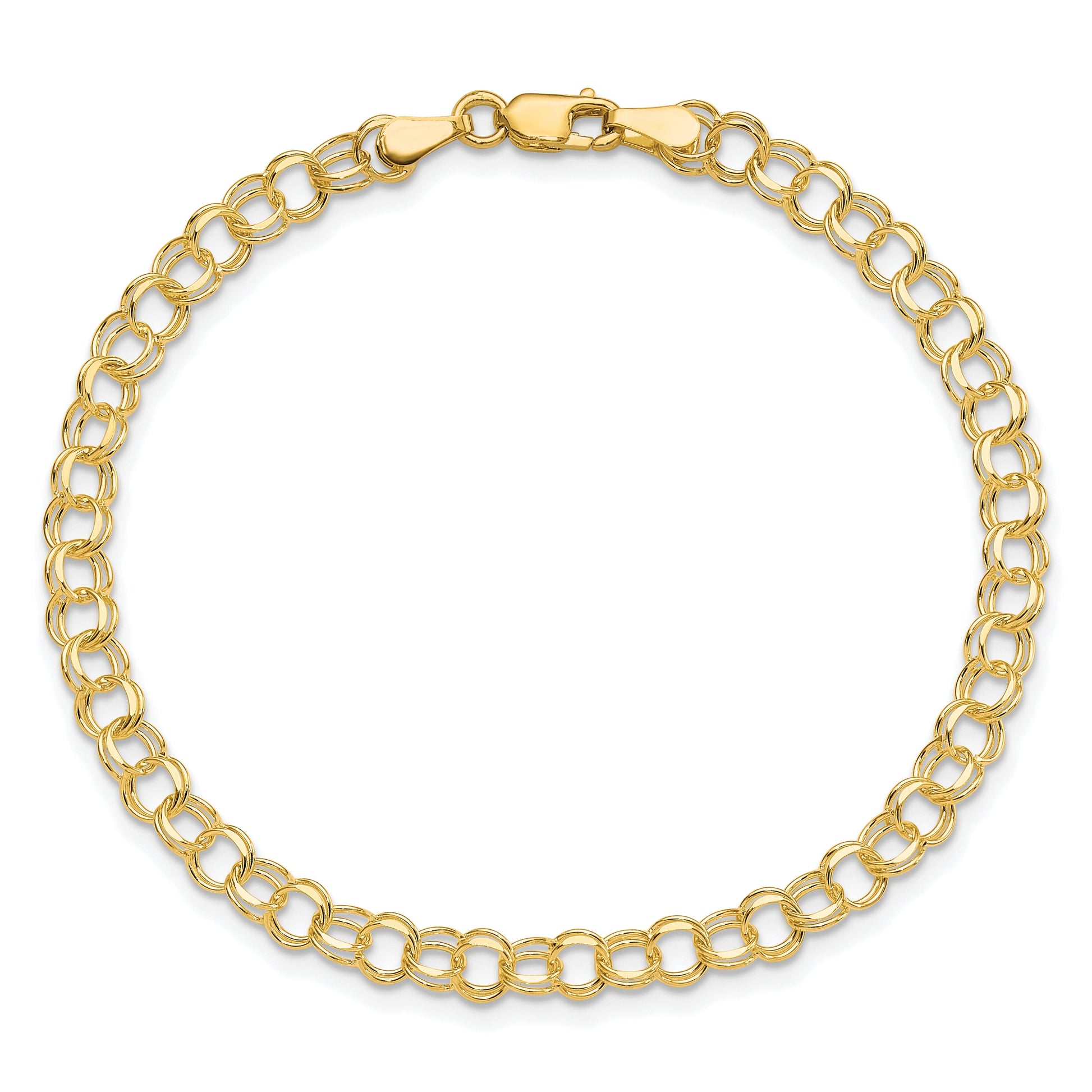 Introducing the 10K Yellow Gold 10Ky Solid Double Link Charm Bracelet. Crafted from genuine 10K gold, this polished charm bracelet boasts an 8-inch length and a 4.5 mm width. The solid gold links offer a timeless elegance, enhancing its luxurious finish. A secure lobster clasp ensures it stays put on your wrist. This exquisite piece of jewelry embodies both simplicity and sophistication. Embrace the classic allure of the 10K Yellow Gold 10Ky Solid Double Link Charm Bracelet as your new everyday essential.