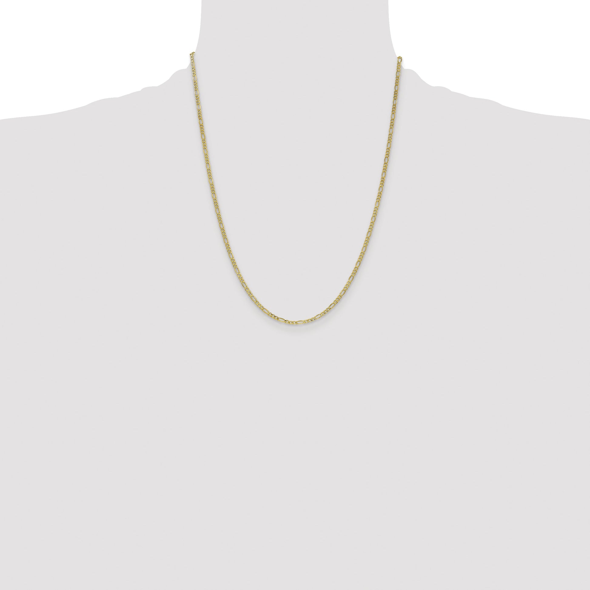 The 10K Yellow Gold 2.5mm Semi-Solid Figaro Chain offers a sleek, classic look perfect for everyday wear. Crafted from high-quality 10K gold with a polished finish, this 22-inch chain features a sturdy lobster clasp for secure wear. Its semi-solid design provides durability without adding weight, making it comfortable for weekly use. Ideal for both men and women, the Figaro style adds a dash of elegance to casual or dressy outfits. The 10K Yellow Gold 2.5mm Semi-Solid Figaro Chain is built to last, backed by a lifetime guarantee, making it a smart addition to any jewelry collection.
