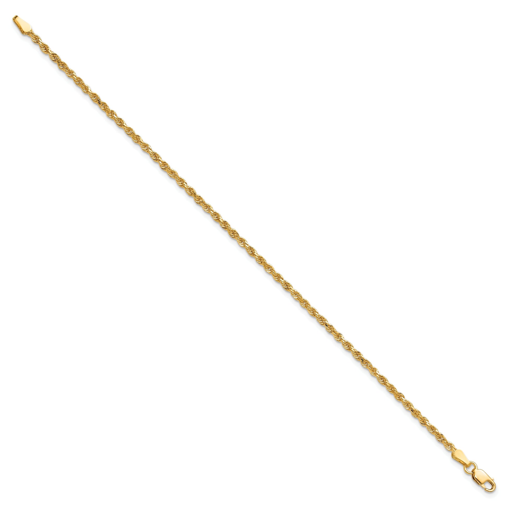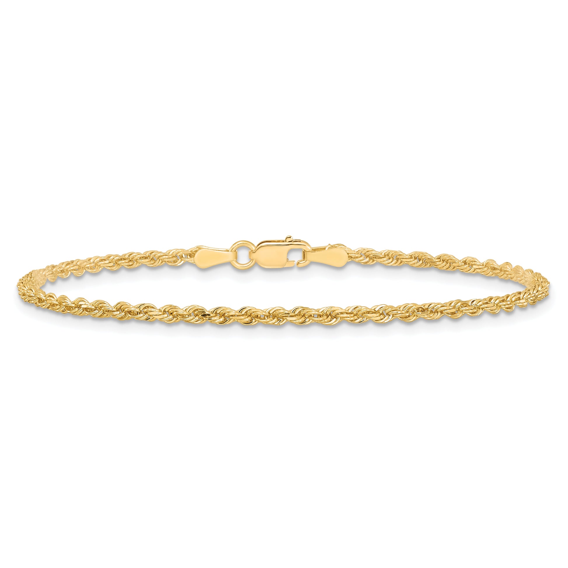 Meet the 10K Yellow Gold 2mm Diamond-Cut Rope Chain Anklet, your new favorite accessory. Crafted from polished 10K yellow gold, this anklet boasts a sturdy lobster clasp. The chain’s 2mm width offers both strength and style with a diamond-cut texture that sparkles as you move. The classic rope chain design adds a timeless charm, making it perfect for everyday wear or special occasions. Embrace elegance and sophistication with the 10K Yellow Gold 2mm Diamond-Cut Rope Chain Anklet – it's more than just jewelry, it's a statement.