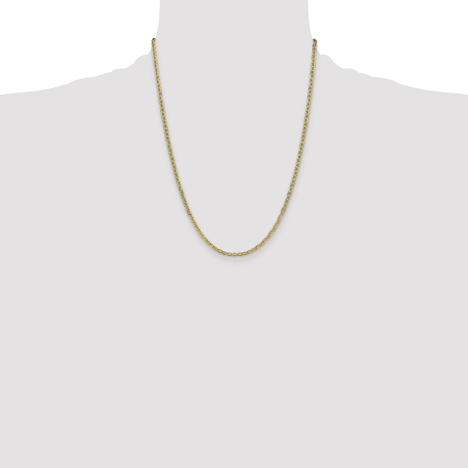 Unleash your style with the stunning 10K Yellow Gold 3.2mm Semi-Solid Anchor Chain. Crafted for ultimate finesse, this 22-inch necklace showcases a polished finish that captures the eye. The 3.2mm anchor chain strikes a perfect balance between strength and elegance, making it sturdy yet chic. Featuring a durable lobster clasp, this semi-solid chain offers both security and ease of wear. Its attractive yellow hue shines beautifully, suitable for any gender. The 10K Yellow Gold 3.2mm Semi-Solid Anchor Chain is the ideal piece for those who appreciate timeless style.