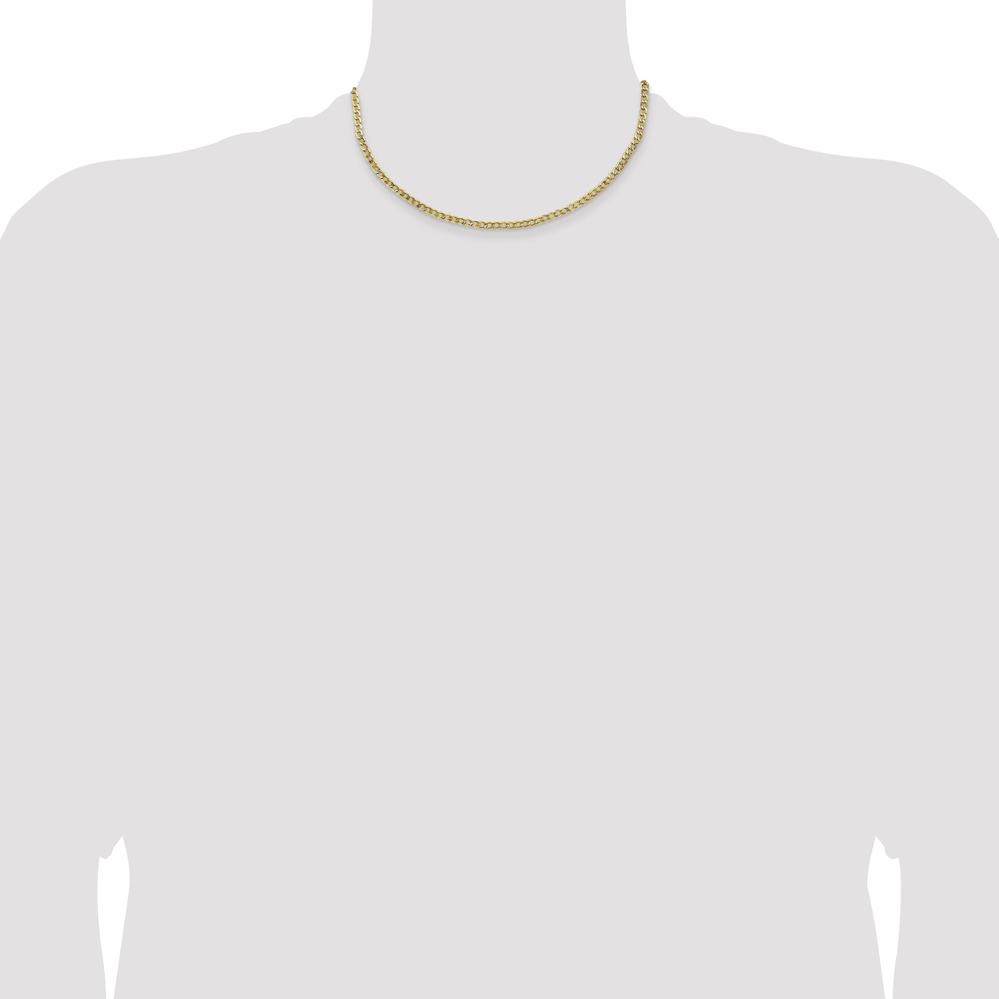The 10K Yellow Gold 3.35mm Semi-Solid Curb Link Chain is a stylish choice for everyday wear. Crafted from pure 10K gold, this necklace offers a polished finish that shines bright. It measures 16 inches long and has a sturdy curb link design, making it both durable and eye-catching. The lobster clasp keeps it secure, while the sleek yellow hue adds a pop of color to any look. Perfect for men and women, the 10K Yellow Gold 3.35mm Semi-Solid Curb Link Chain can elevate any outfit, offering both style and strength.