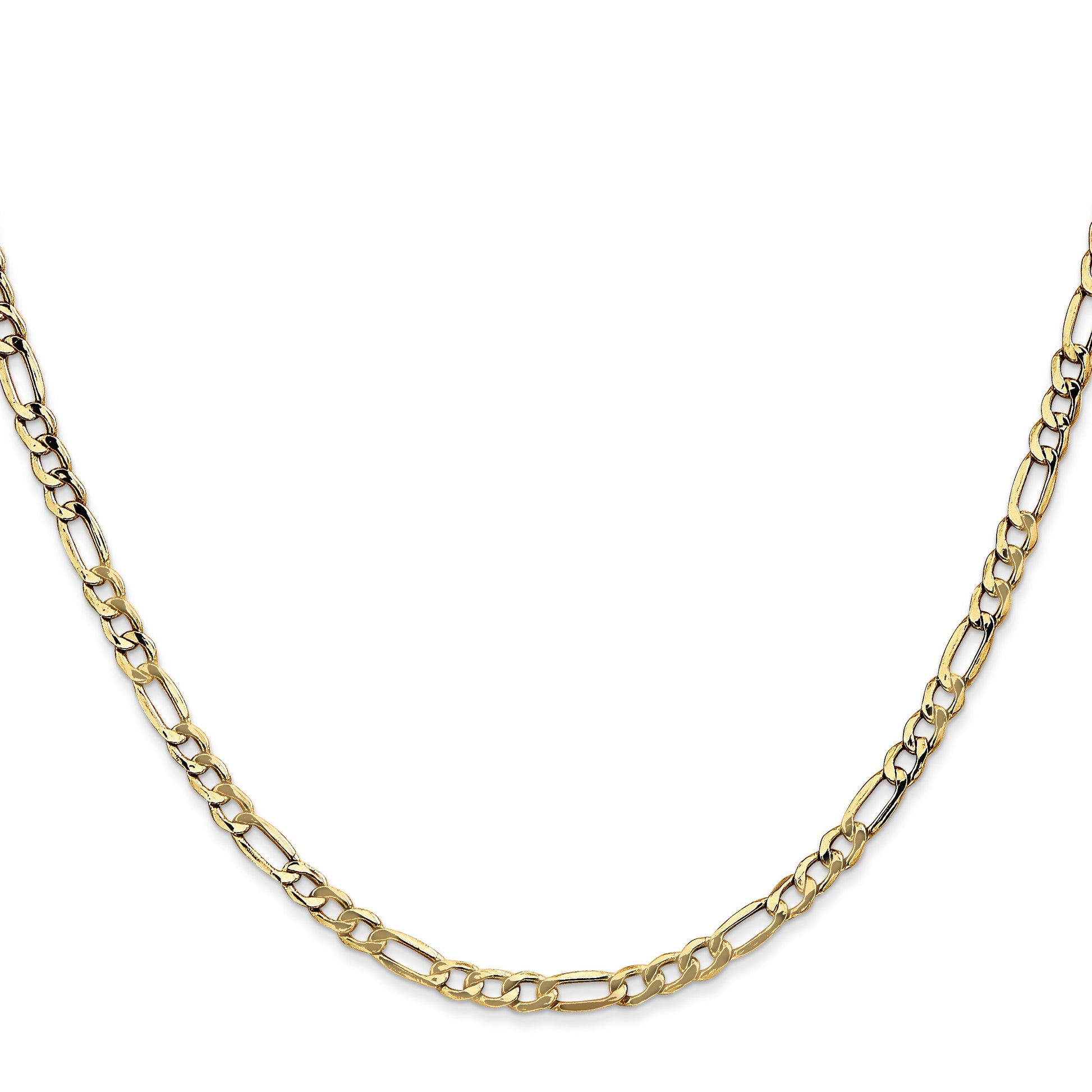 Introducing the 10K Yellow Gold 3.5mm Semi-Solid Figaro Chain, a sleek piece perfect for everyday wear. Crafted from high-quality 10K gold, this chain features a polished finish and a sturdy lobster clasp that keeps it secure. Its 22-inch length makes it versatile for layering or wearing solo. The semi-solid design offers durability without extra weight, making it comfortable to wear all day. Whether you're dressing up or down, the Figaro chain elevates your look with its classic style. The 10K Yellow Gold 3.5mm Semi-Solid Figaro Chain is built to last and comes with a lifetime guarantee.