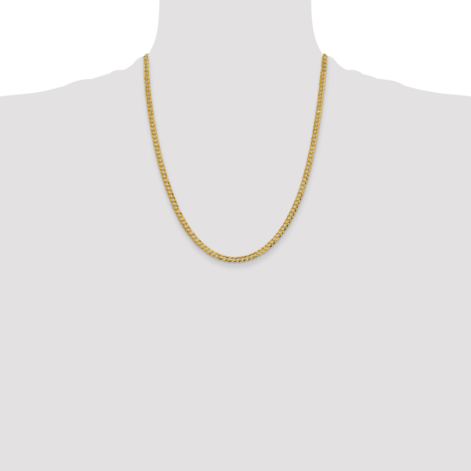 The 10K Yellow Gold 3.7mm Lightweight Flat Cuban Chain is a stylish piece perfect for everyday wear. Made from high-quality 10K gold, it offers lasting shine and strength. The chain measures 22 inches long and features a sleek, flat Cuban link design that sits comfortably against your skin. Its lobster clasp makes it easy to wear and secure. Whether you dress up or go casual, this chain adds a fresh, modern touch to any look. The name of this jewelry piece is the 10K Yellow Gold 3.7mm Lightweight Flat Cuban Chain, a must-have for unisex style lovers.