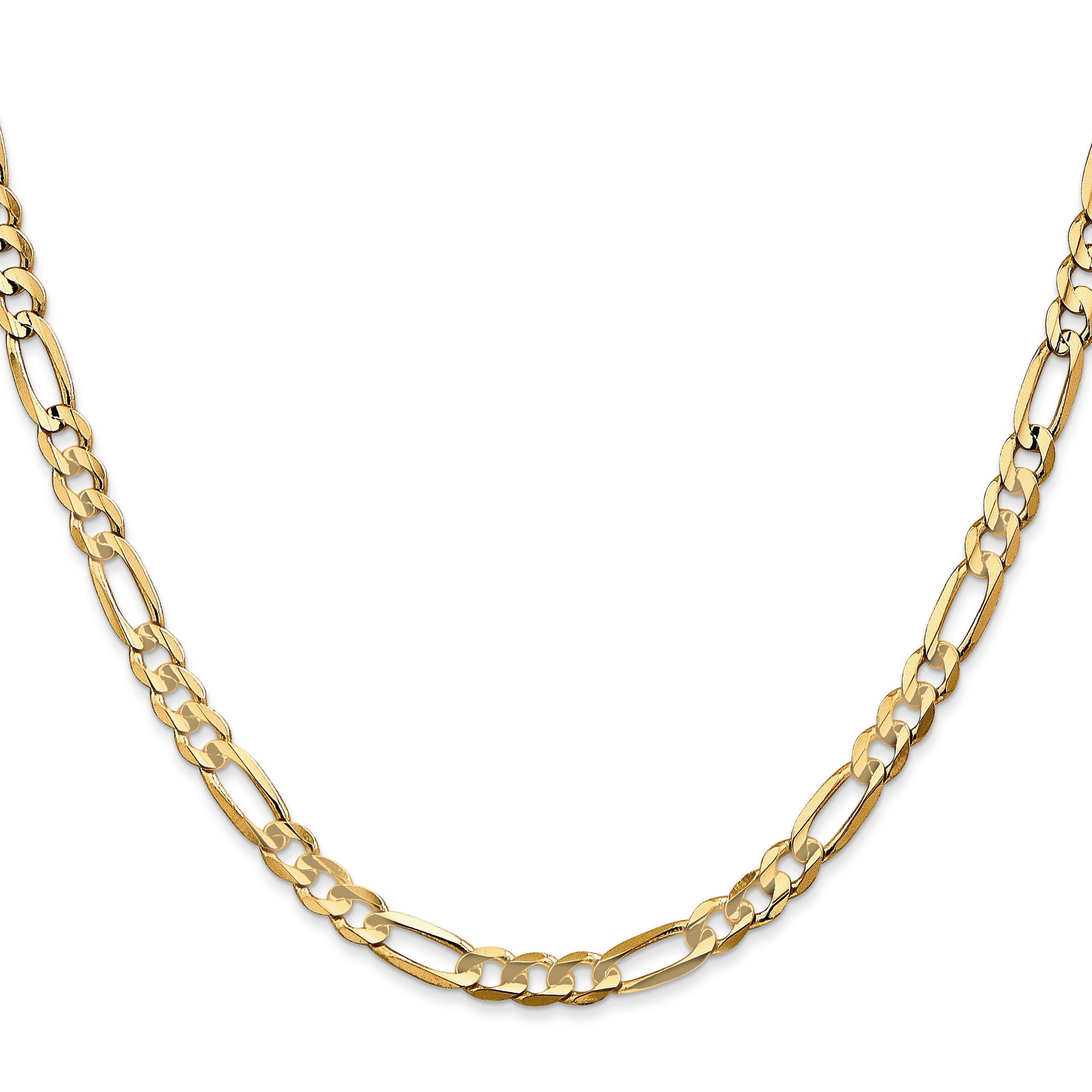 The 10K Yellow Gold 4.5mm Concave Figaro Chain is a stylish piece perfect for everyday wear. Crafted from solid 10K gold, it boasts a polished finish that adds shine and durability. The chain measures 26 inches and features a smooth, lightweight design that feels comfortable around the neck. The unique concave profile gives it a modern look, while the lobster clasp keeps it secure. This unisex chain pairs well with any outfit and makes a great gift. The Jewelry by design guarantees quality with a lifetime warranty. Elevate your style with the 10K Yellow Gold Concave Figaro Chain.