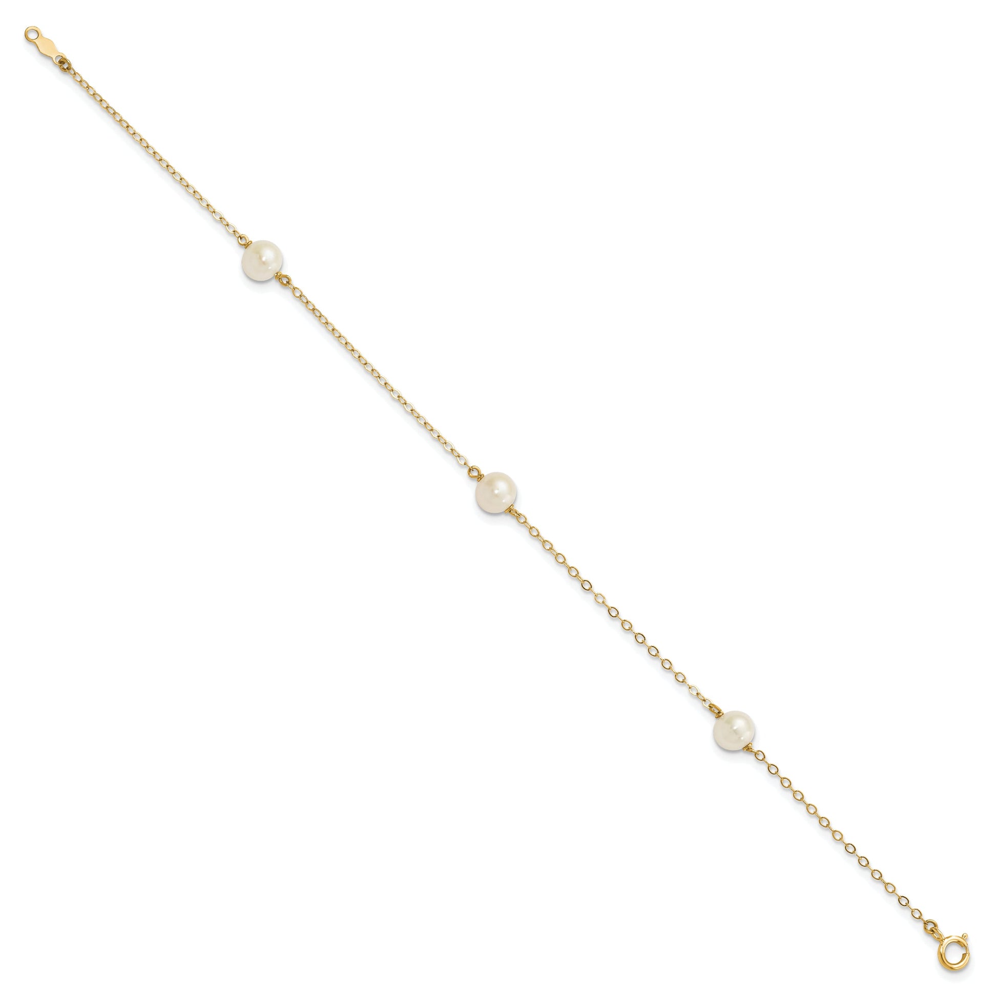 The 10K Yellow Gold 5-6mm White Near-Round Freshwater Cultured Pearl 3-Station Bracelet is a true testament to elegance. Crafted from polished 10K yellow gold, it features three lustrous freshwater cultured...