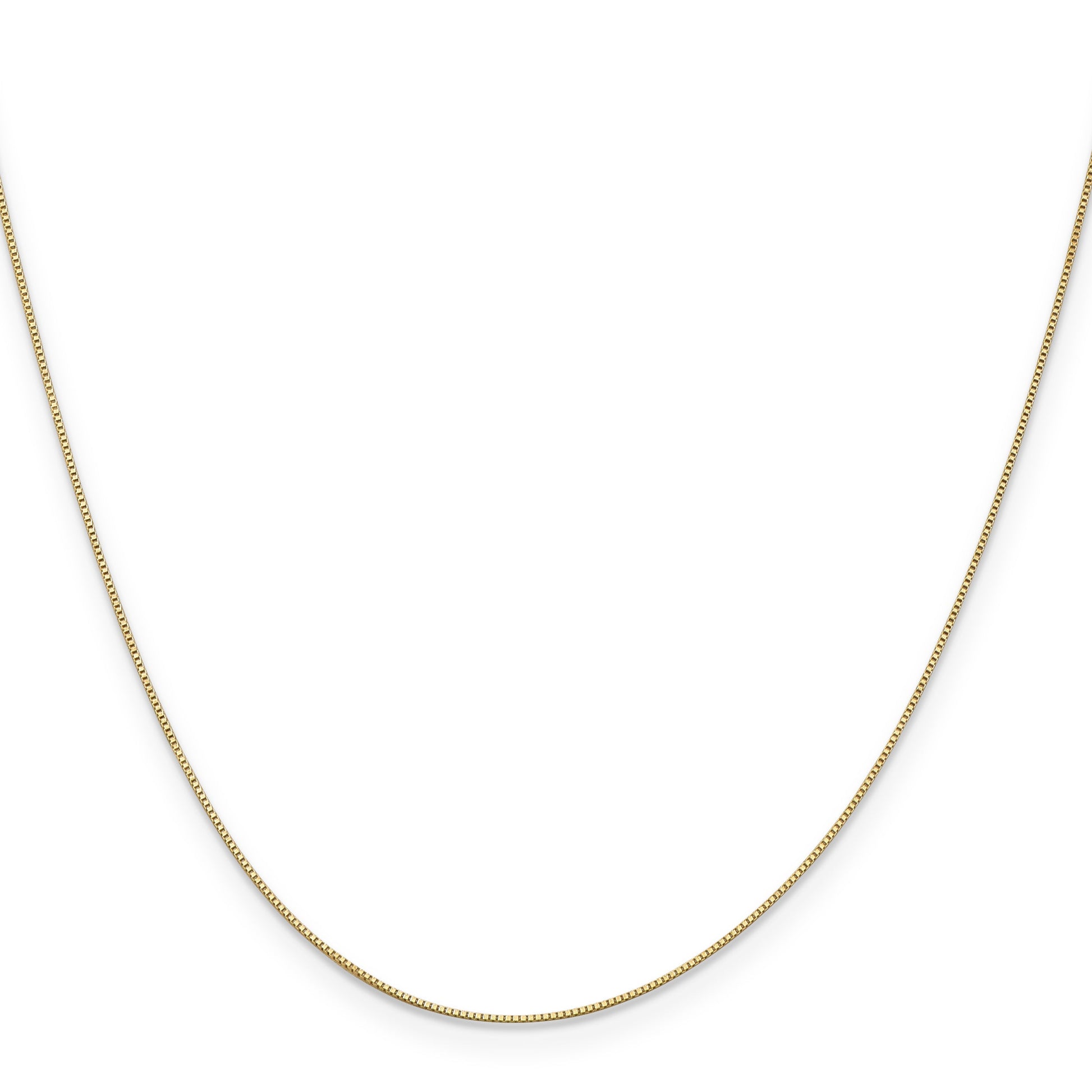 The 10K Yellow Gold Baby Box Chain with Lobster Clasp is a sleek and stylish piece perfect for everyday wear. Crafted from high-quality 10K gold, this chain features a polished finish that adds a bright shine. Its 24-inch length makes it versatile for many looks, whether layered or worn solo. The delicate, 0.5mm wide box design offers a refined touch that works for both men and women. With a secure lobster clasp, this necklace is built to last and comes with a lifetime guarantee. The 10K Yellow Gold Baby Box Chain is a timeless accessory that adds a subtle pop of gold to your style.