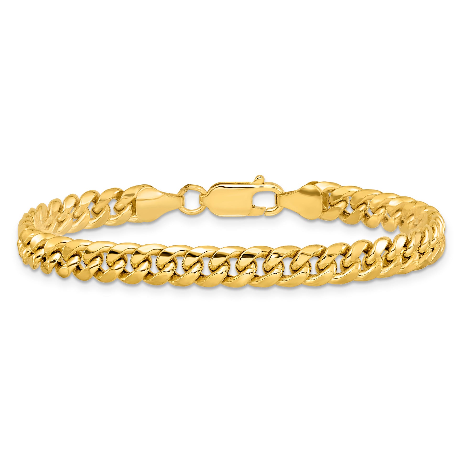 Introducing the 10K Yellow Gold 6mm Semi-Solid Miami Cuban Chain bracelet, a timeless addition to any jewelry lover's collection. Crafted from high-quality 10K gold, this bracelet boasts a radiant polished finish that shimmers with every move. With a bold 6mm width, it's the perfect blend of strength and style for both men and women. The semi-solid design provides a lightweight feel without compromising durability, making it ideal for daily wear. Equipped with a secure lobster clasp, this 7-inch beauty guarantees ease and peace of mind. Embrace the essence of luxury with the 10K Yellow Gold Cuban Chain.