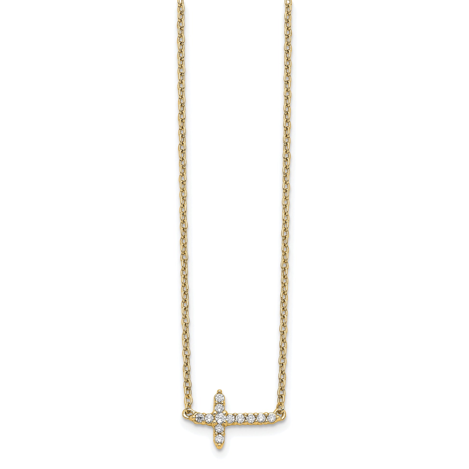 10K Yellow Gold Diamond Sideways Cross 18In Necklace