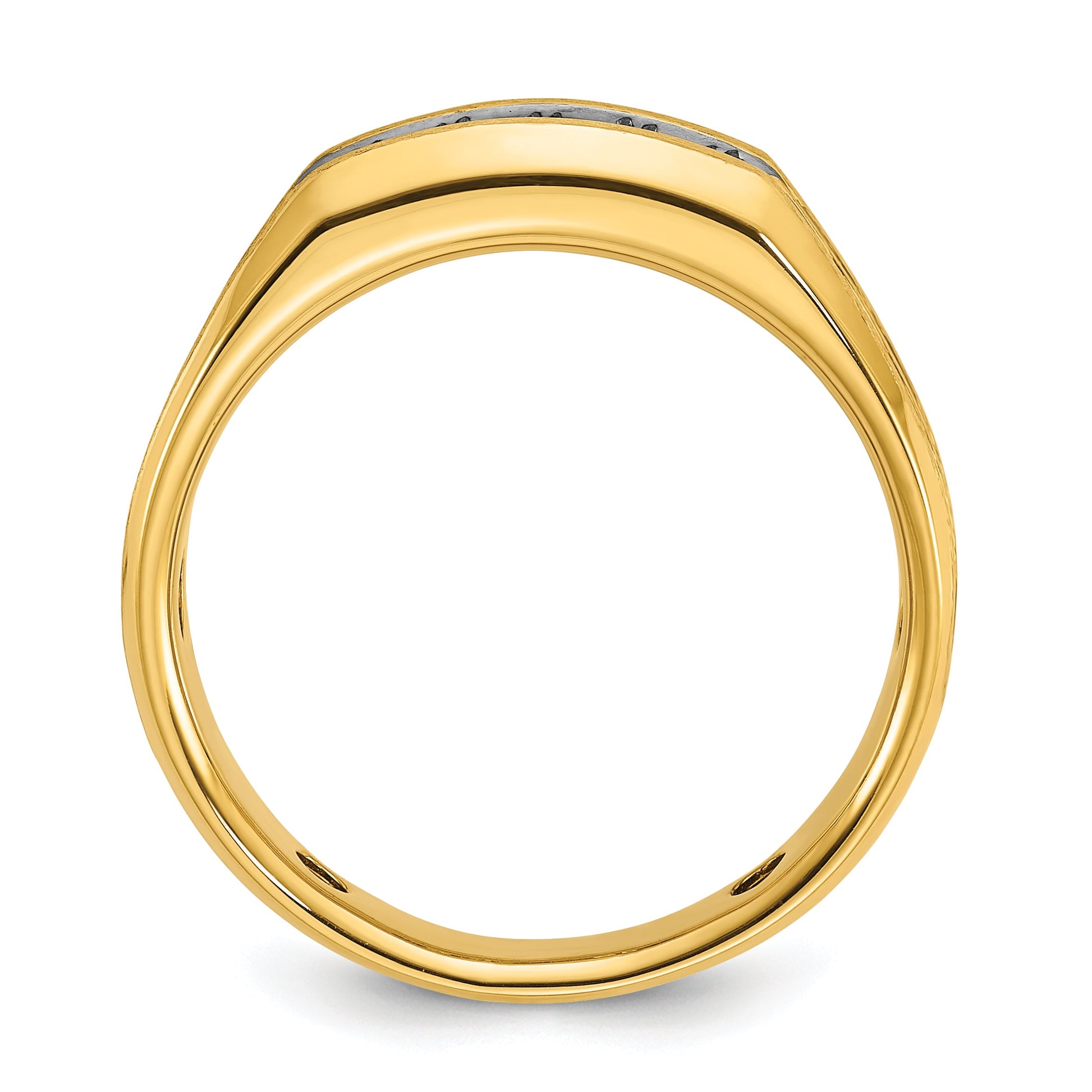 The 10K Yellow Gold Ibgoodman Men's Polished Satin and Grooved 5-Stone Ring Mounting is a perfect blend of elegance and masculinity. Crafted from high-quality 10K yellow gold, this men's ring features a sleek polished satin finish that catches the light beautifully. Its unique design is further enhanced by a stylish grooved detail, giving it a modern and distinguished look. This ring offers space for five stones, allowing for personalization. Elevate any outfit and add that touch of class with the 10K Yellow Gold Ibgoodman Men's Polished Satin and Grooved 5-Stone Ring Mounting.