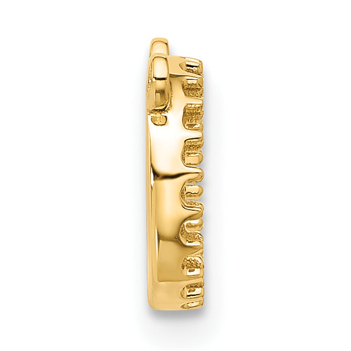 The 10K Yellow Gold Open Circle Necklace Mounting is a perfect blend of elegance and simplicity. Crafted in radiant 10K yellow gold, this mounting showcases a sleek, open circle design that measures 9 mm in both length and width. The piece is expertly made using raw casting, ensuring durability and quality. Designed without any stones, this mounting allows your creativity to shine as you customize it with your own favorite chain and pendant. Add a touch of class to your jewelry collection with this 10K Yellow Gold Open Circle Necklace Mounting.