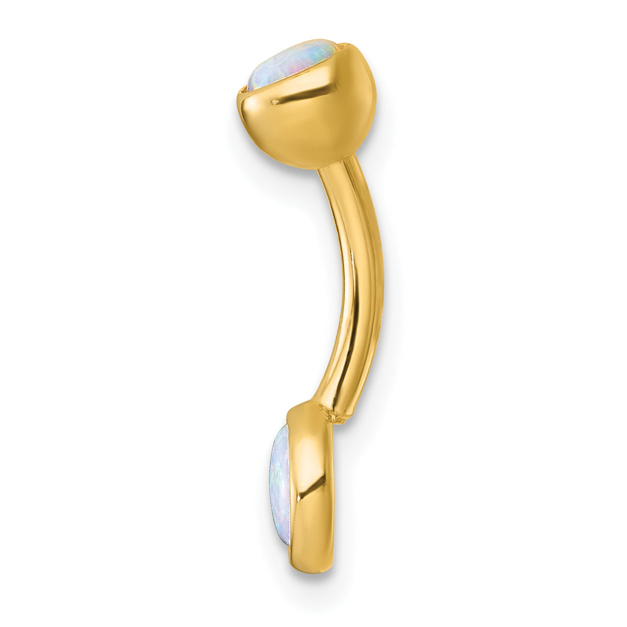 10K Yellow Gold Polished 14 Gauge Bezel-Set Round Lab Created Opal Navel Ring