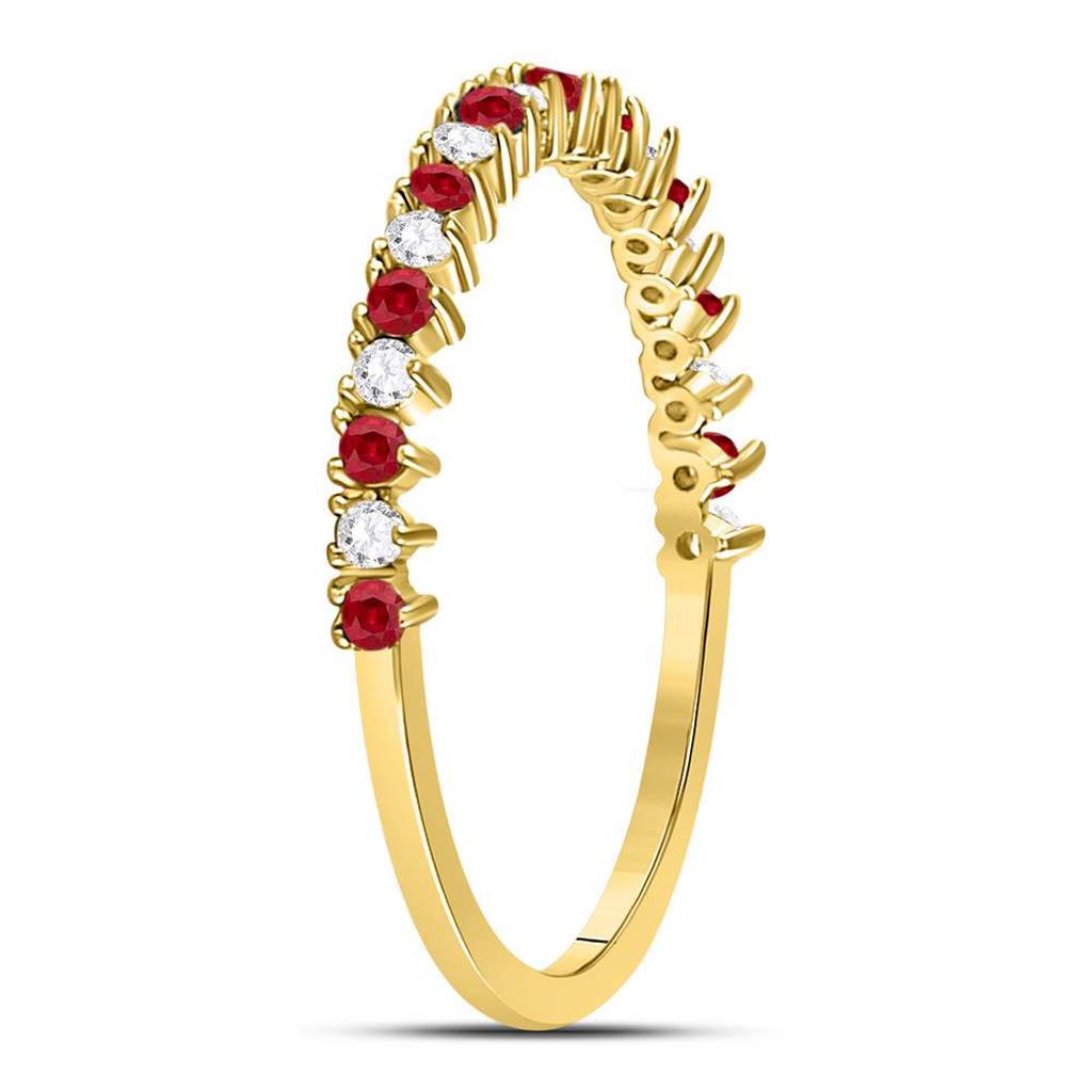 10k Yellow Gold Round Ruby Diamond Stackable Band Ring 1/4 Cttw
