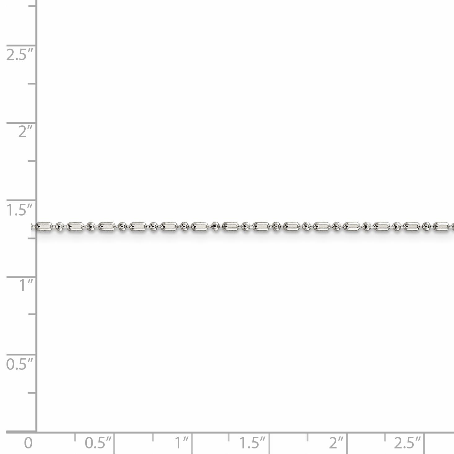 The 14 Inch Sterling Silver 1.5mm Fancy Beaded Chain offers an elegant and timeless accessory for any woman. Made with 925 sterling silver, this necklace shines with a polished finish, perfect for adding a touch of grace to your ensemble. The 1.5mm ball chain design creates a captivating visual texture, balancing simplicity and sophistication. With a reliable spring ring clasp, this solid, machine-made piece ensures durability for daily wear. Ideal for elevating both casual and formal outfits, the 14 Inch Sterling Silver 1.5mm Fancy Beaded Chain is a must-have addition to your jewelry collection.