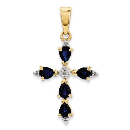 Natural Diamond and Sapphire Cross Pendant in 14k Yellow Gold