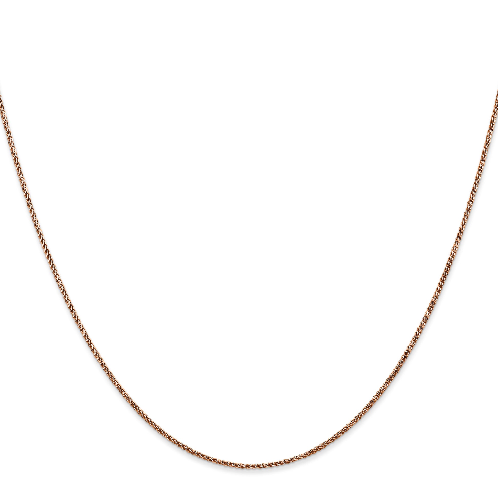 The 14K Rose Gold 14K 1.0mm Spiga Chain is a sleek and elegant choice for everyday wear. Crafted from solid rose gold, this 16-inch chain features a durable Wheat (Spiga) design that adds a subtle shine to any outfit. Its polished finish highlights the rich color, making it stand out without being flashy. The lobster clasp ensures a secure fit, while the die-struck manufacturing process guarantees quality. Perfect for layering or wearing solo, the 14K Rose Gold 14K 1.0mm Spiga Chain offers timeless style with a lifetime guarantee.