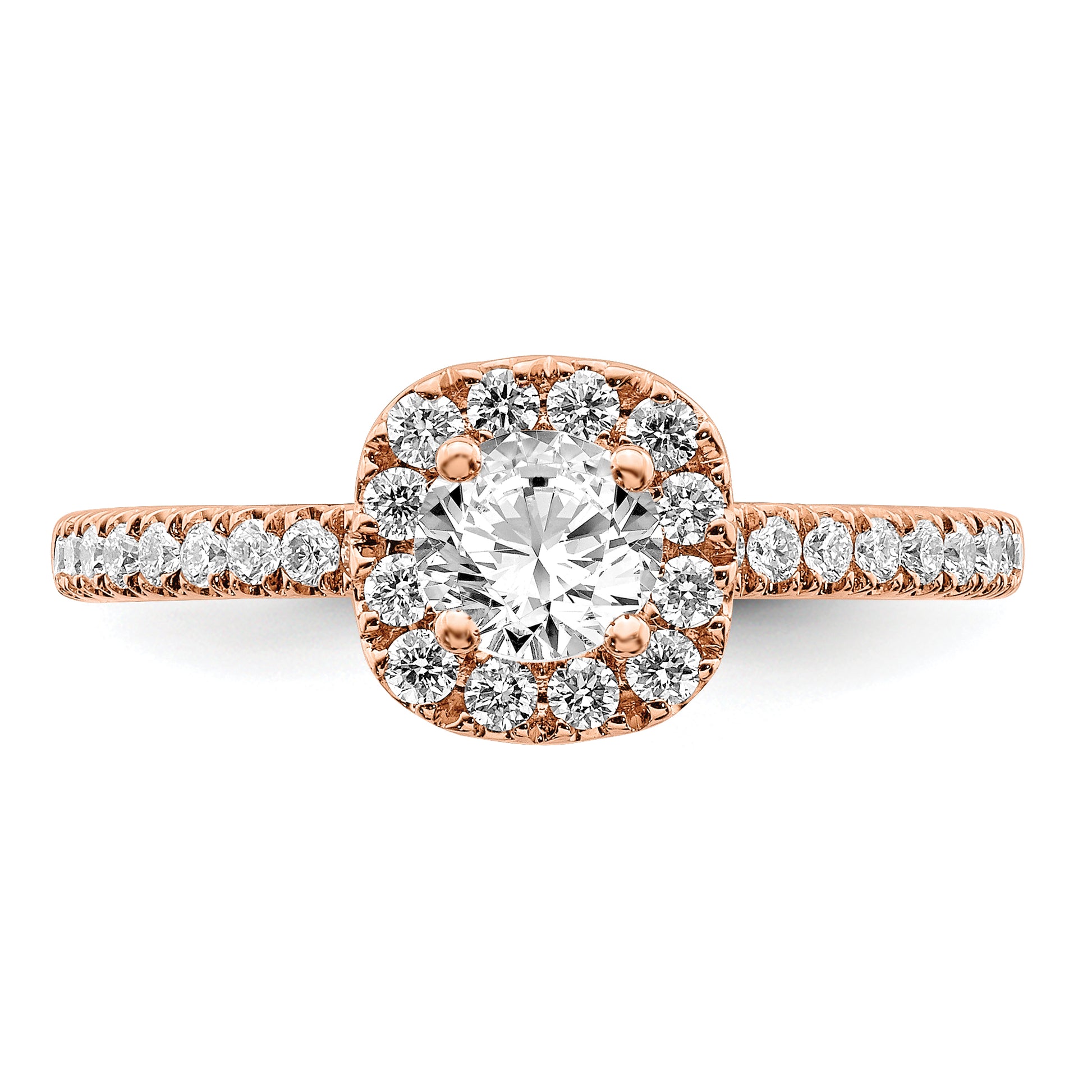 The 14k Rose Gold 3/4 Ct. Lab Grown Diamond VS/SI+ G+ Round Halo Engagement Ring embodies elegance. This stunning ring features a vibrant center diamond, accented by a halo and side stones, for a total of 3/4 carats. Its 14k rose gold setting adds warmth and romance, making it a perfect choice for any engagement. With lab-grown diamonds, it offers exceptional quality and clarity, rated VS/SI+, and a G+ color grade. Choose this ring to celebrate love with style and environmental consciousness. The 14k Rose Gold 3/4 Ct. Lab Grown Diamond Halo Engagement Ring promises a lifetime of memories.