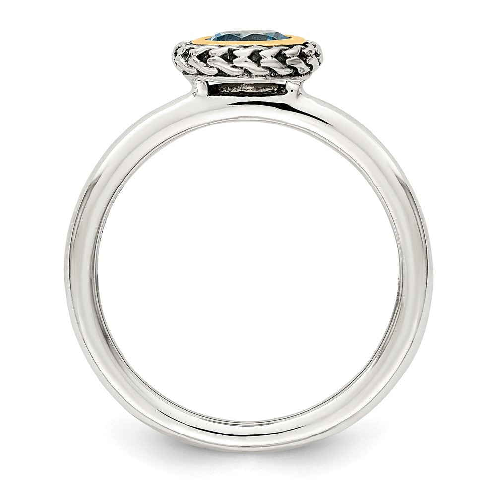 14K/Silver Two Tone Shey Couture Sterling Silver With 14K Accent Antiqued Round Blue Topaz Ring