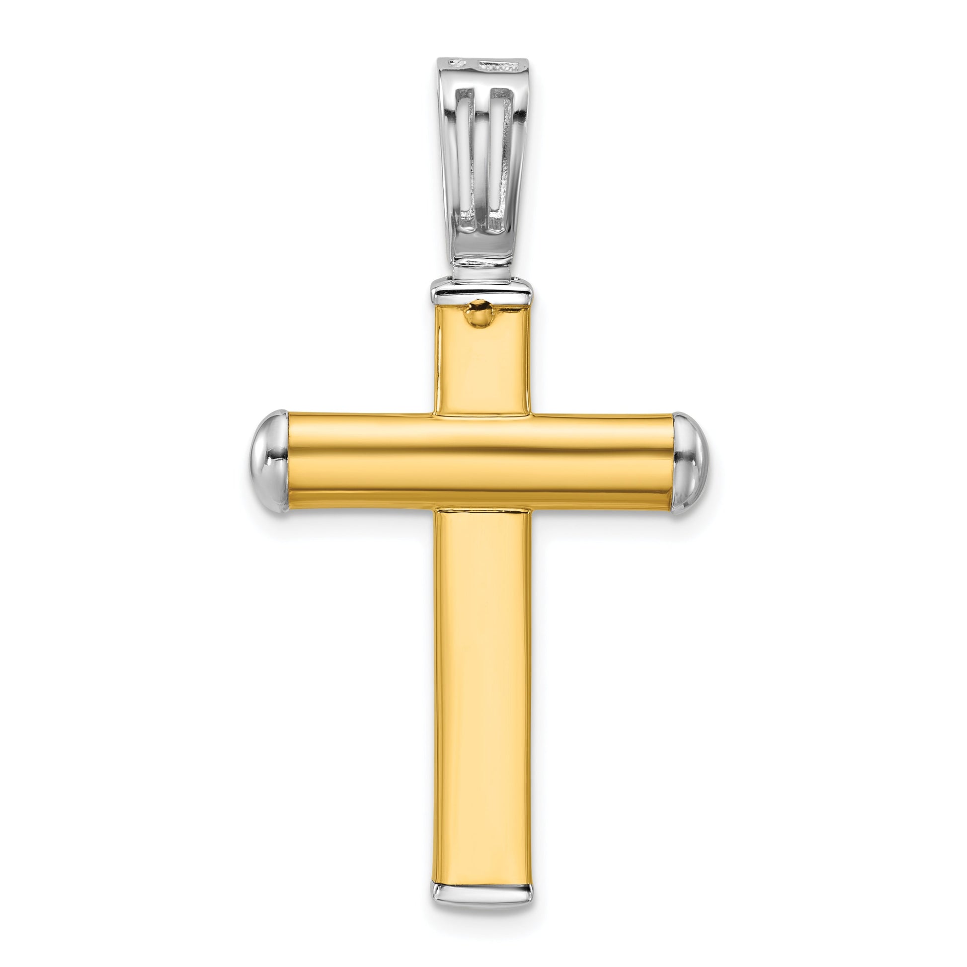 Discover the 14K Two-Tone 14K Polished And Diamond-Cut Cross Pendant, a true showcase of craftsmanship. Measuring 28.1 mm in length, it boasts a sleek, polished finish with dazzling diamond-cut details that catch the light. Crafted from durable, solid 14K gold in a stylish two-tone design, this unisex pendant adds a classic touch to any outfit. Its reversible feature offers versatile wear, while the silver-tone plating enhances its modern look. Perfect for everyday or special occasions, the 14K Two-Tone cross pendant delivers timeless style with a lifetime guarantee.