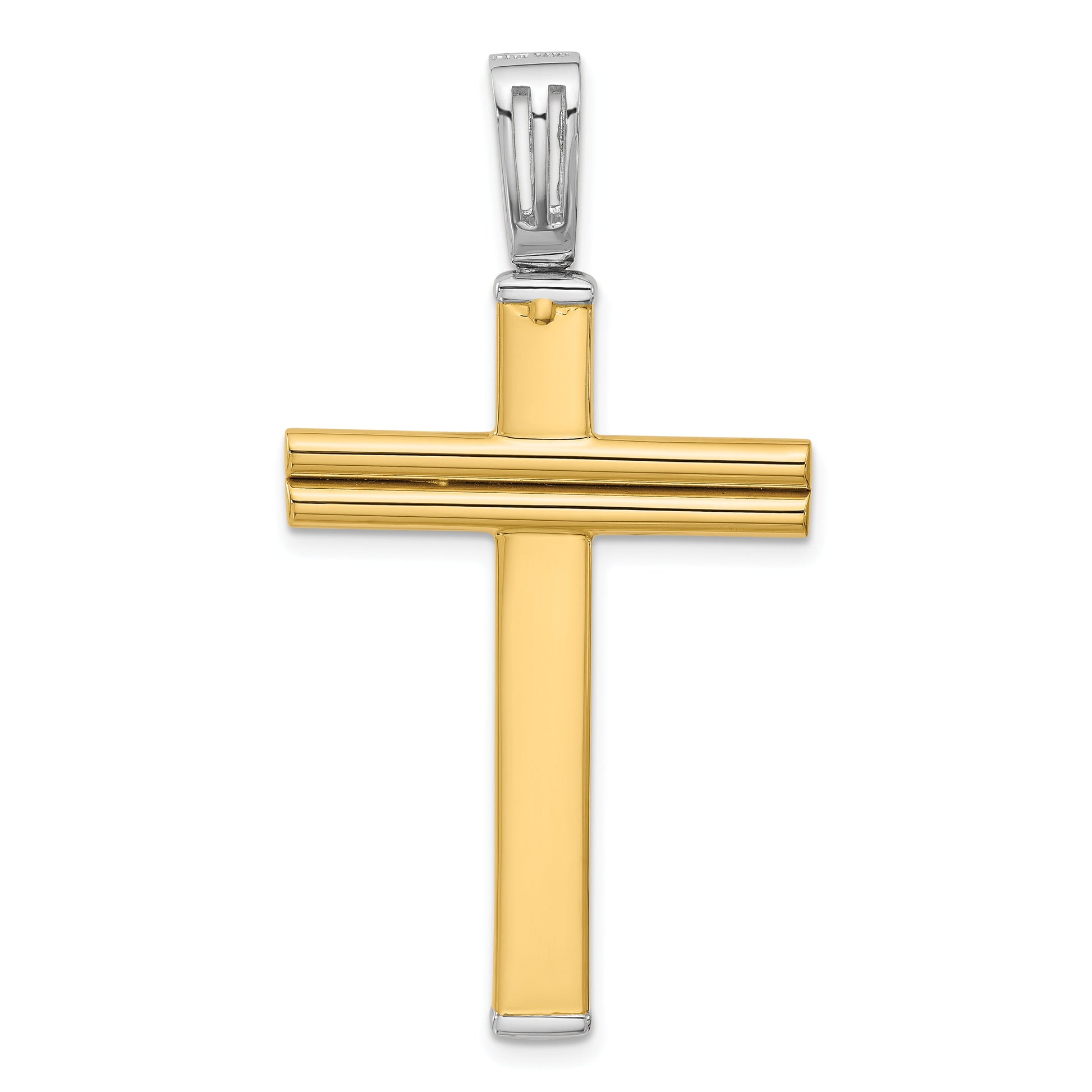 The 14K Two-Tone Reversible Cross Pendant offers a sleek and stylish look for any jewelry collection. Crafted from high-quality 14K gold, this pendant features a polished and satin finish with a stunning diamond-cut texture. Its versatile design allows it to be worn two ways, adding more options to your style. Light in weight, it measures about 51 mm long with a 40 mm charm and a diameter of nearly 27 mm. Perfect for both men and women, the pendant comes with a lifetime guarantee, ensuring lasting shine and durability. The silver-tone plating highlights its modern vibe, making the 14K Two-Tone Reversible Cross Pendant your go-to statement piece.