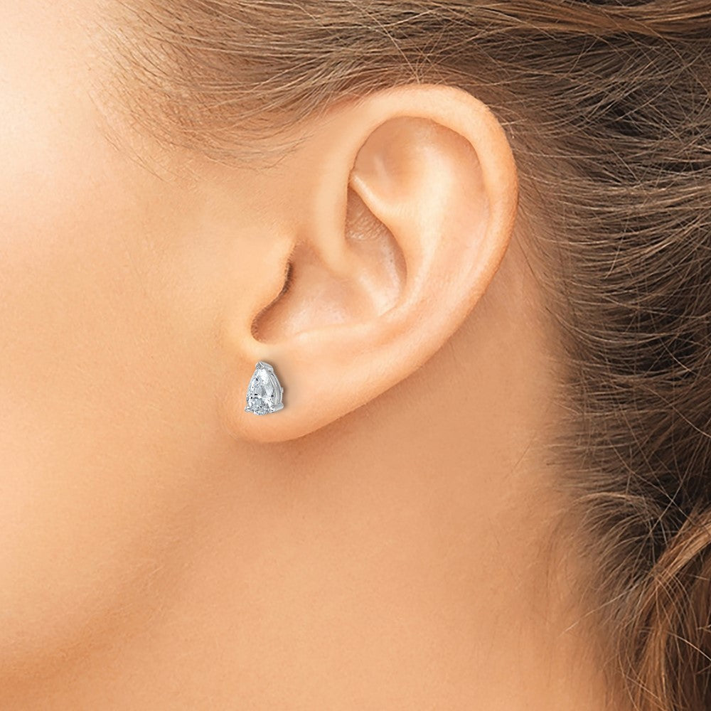 The 14k White Gold 1 1/2 ctw Lab Grown Diamond VS/SI+ G+ Pear 4 Prong Heavy Wt. Stud Earrings are a stunning accessory for any occasion. Crafted with 14k white gold, these earrings gleam with polished richness. Each stud securely grips a sparkling pear-shaped lab-grown diamond in a robust four-prong setting. The diamonds boast excellent VS/SI+ clarity and shine with a G+ color grade, making your ears sparkle with every move. The earrings feature a durable post and push back closure, ensuring comfort and security. Add a touch of elegance to your look with this exquisite pair of 14k White Gold 1 1/2 ctw Lab Grown Diamond Stud Earrings.
