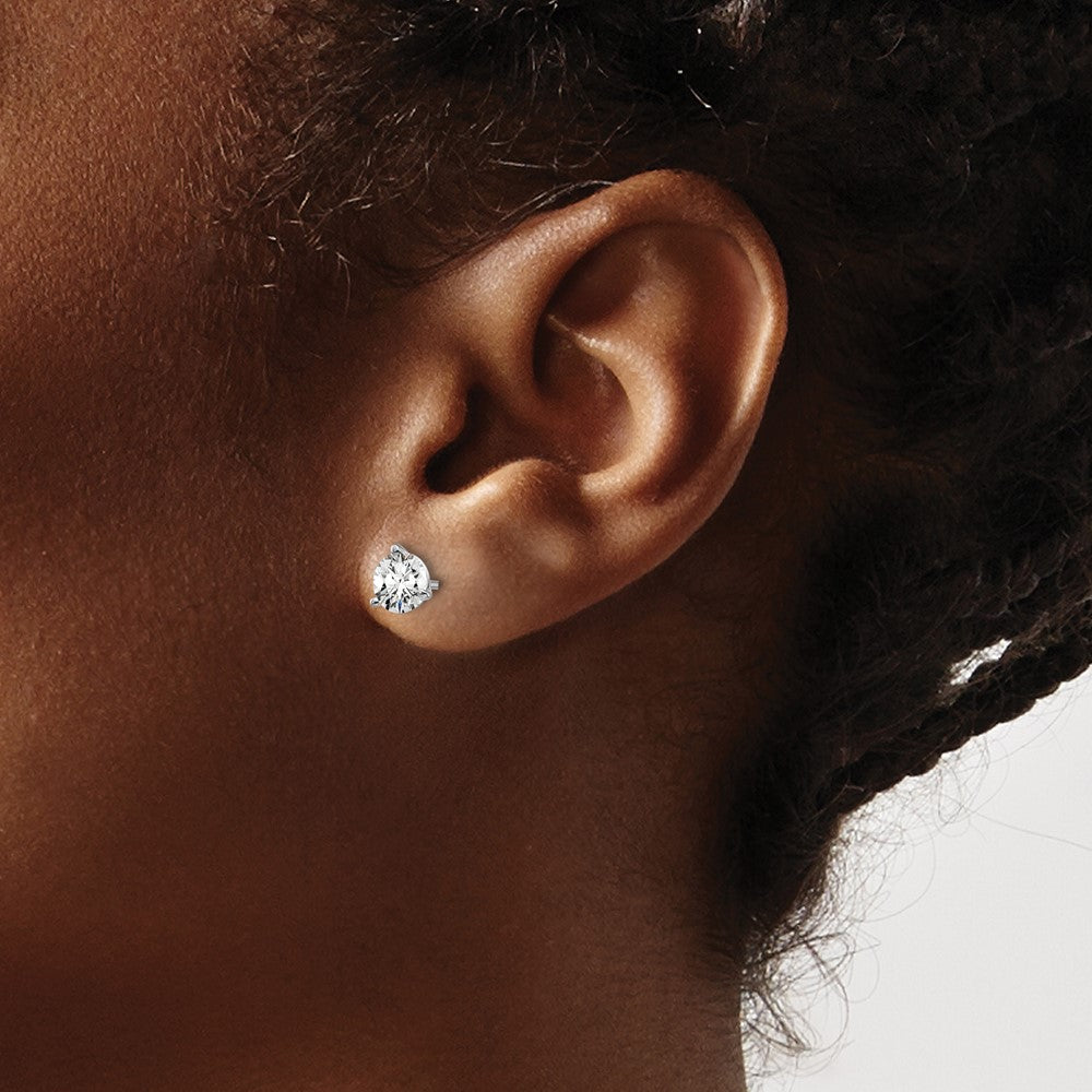 Discover the elegance of the 14K White Gold 1 Ctw Lab Grown Diamond Vs+ F+ Round 3 Prong Heavy Wt. Stud Earrings. Crafted with polished 14K white gold, these earrings shine with two stunning lab-grown diamonds, each 5 mm round cut, set in sturdy 3-prong settings. The diamonds boast VS+ clarity and F+ color, ensuring brilliance and clarity. The heavy weight and solid design make these earrings durable and eye-catching. Perfect for women who love classic jewelry with a modern twist, the earrings come in a gift box and feature a secure post and push-back closure. Elevate your look with this timeless jewelry piece.