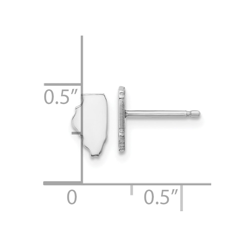 Discover the 14K White Gold 14Kw Illinois State Earrings, a charming pair perfect for everyday wear. These earrings are crafted from high-quality 14K gold and finished with a polished look that adds shine and elegance. Measuring 8.49 mm in length and 5.81 mm in width, they are small and comfortable, ideal for women. The silver-tone rhodium plating gives a sleek, modern touch, while the post and push-back closure ensure easy wear. Show off your Illinois pride with these stylish, lightweight earrings they fit comfortably and stand out with their bright finish.