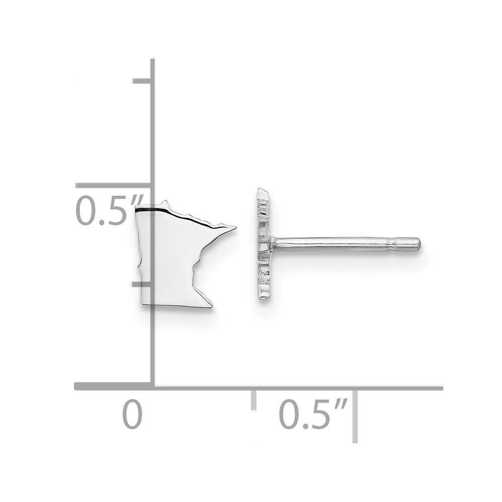 Discover the beauty of the 14K White Gold Minnesota State Earrings, crafted to showcase your pride in style. These small, elegant earrings feature a polished 14K gold finish with a sleek rhodium coating that adds shine and durability. The button design with a secure post and push-back ensures comfort and steady wear for daily use. With a size of just over 7 millimeters, these earrings make a subtle yet meaningful statement. Perfect for women who love to show off their state, the 14K White Gold Minnesota State Earrings are a charming addition to any jewelry collection.