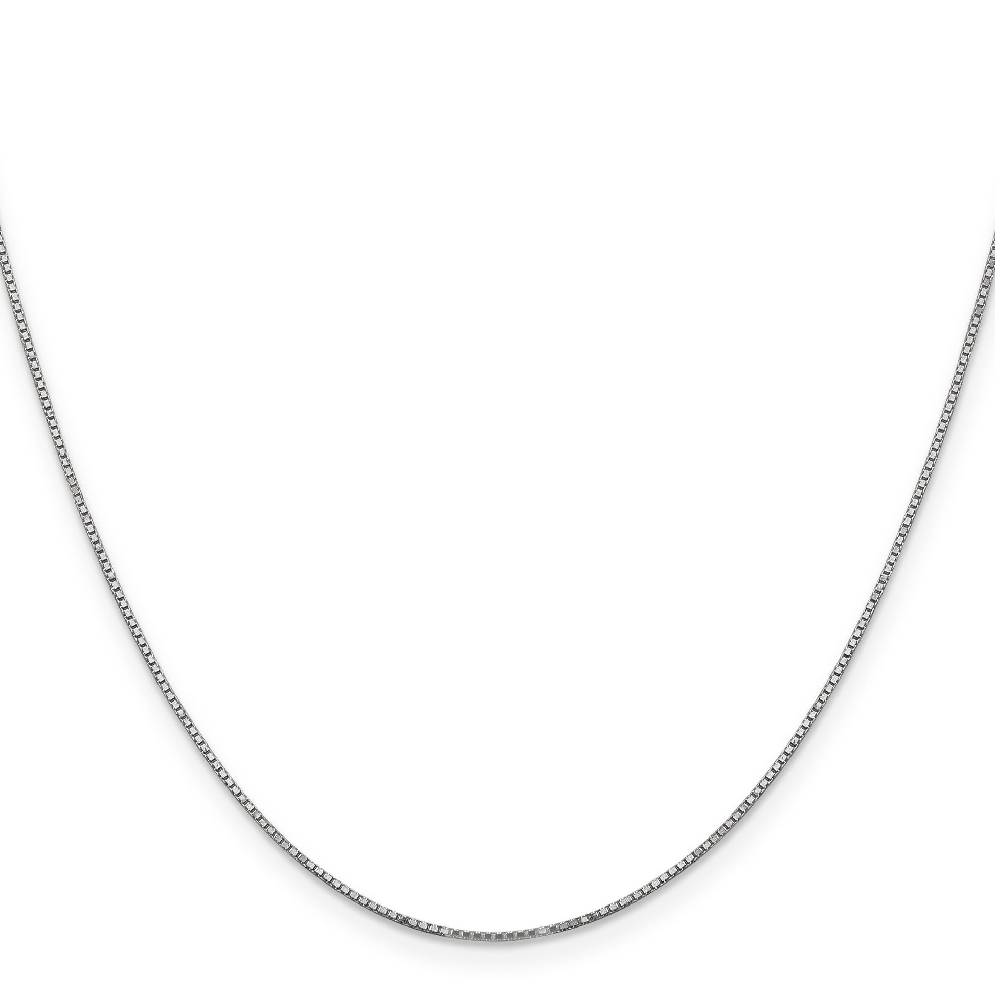 Discover the beauty of the 14K White Gold 14K 20 Inch .9mm Box With Spring Ring Clasp Chain, a perfect piece for everyday wear. Crafted from genuine 14K gold, this chain features a sleek and polished finish that adds a subtle shine to any look. The 20-inch length makes it versatile for layering or wearing alone, and the sturdy spring ring clasp ensures secure comfort. Its slim .9mm width offers a delicate touch of elegance, while the rhodium plating prevents tarnish and keeps the chain shining bright. Elevate your jewelry collection with this timeless and reliable necklace.