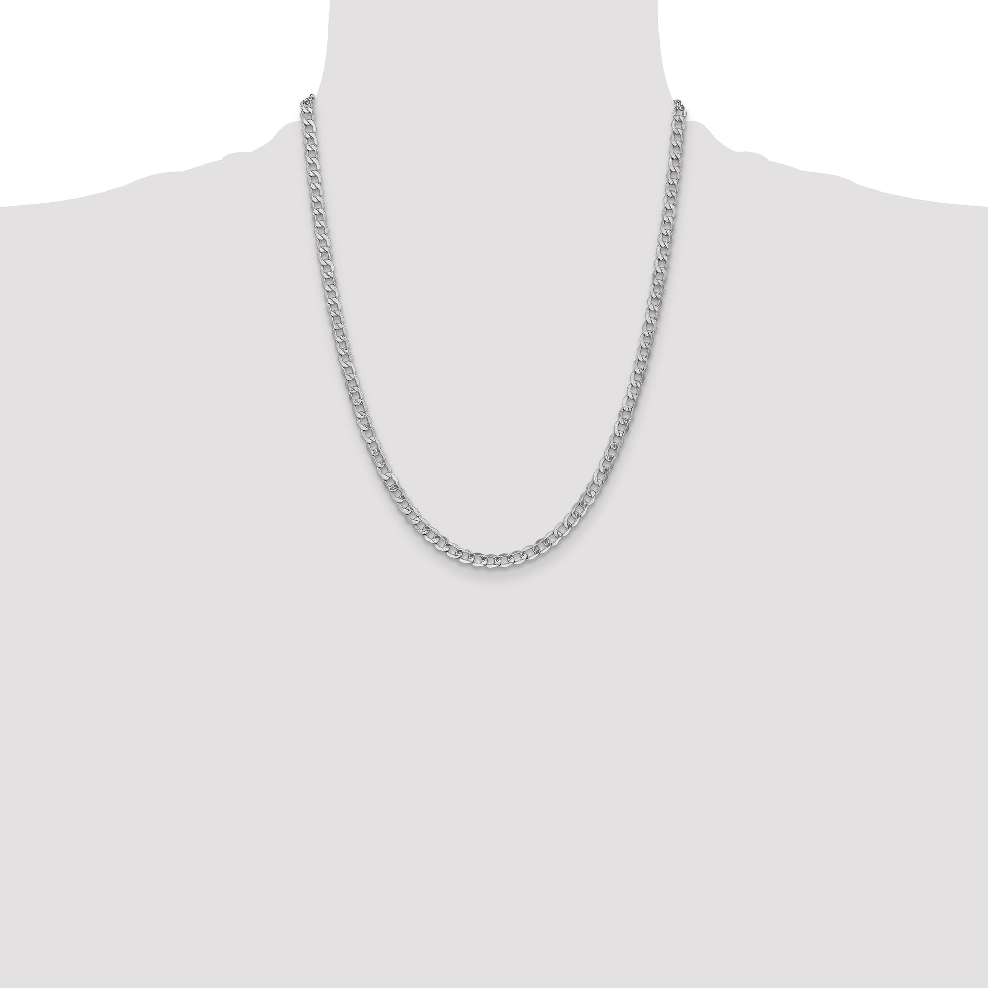 Discover the allure of our 14K White Gold 22 Inch 4.3mm Semi-Solid Curb Chain with Lobster Clasp. This polished beauty is crafted from 14K white gold and features a sleek 22-inch length, making it a timeless addition to any jewelry collection. The chain, designed in the classic curb style, measures 4.3mm in width, and its semi-solid construction offers both elegance and durability. The rhodium plating adds a lustrous finish, while the secure lobster clasp ensures it stays in place. Perfect for both casual and formal settings, this 14K White Gold Curb Chain is a staple piece for any wardrobe.