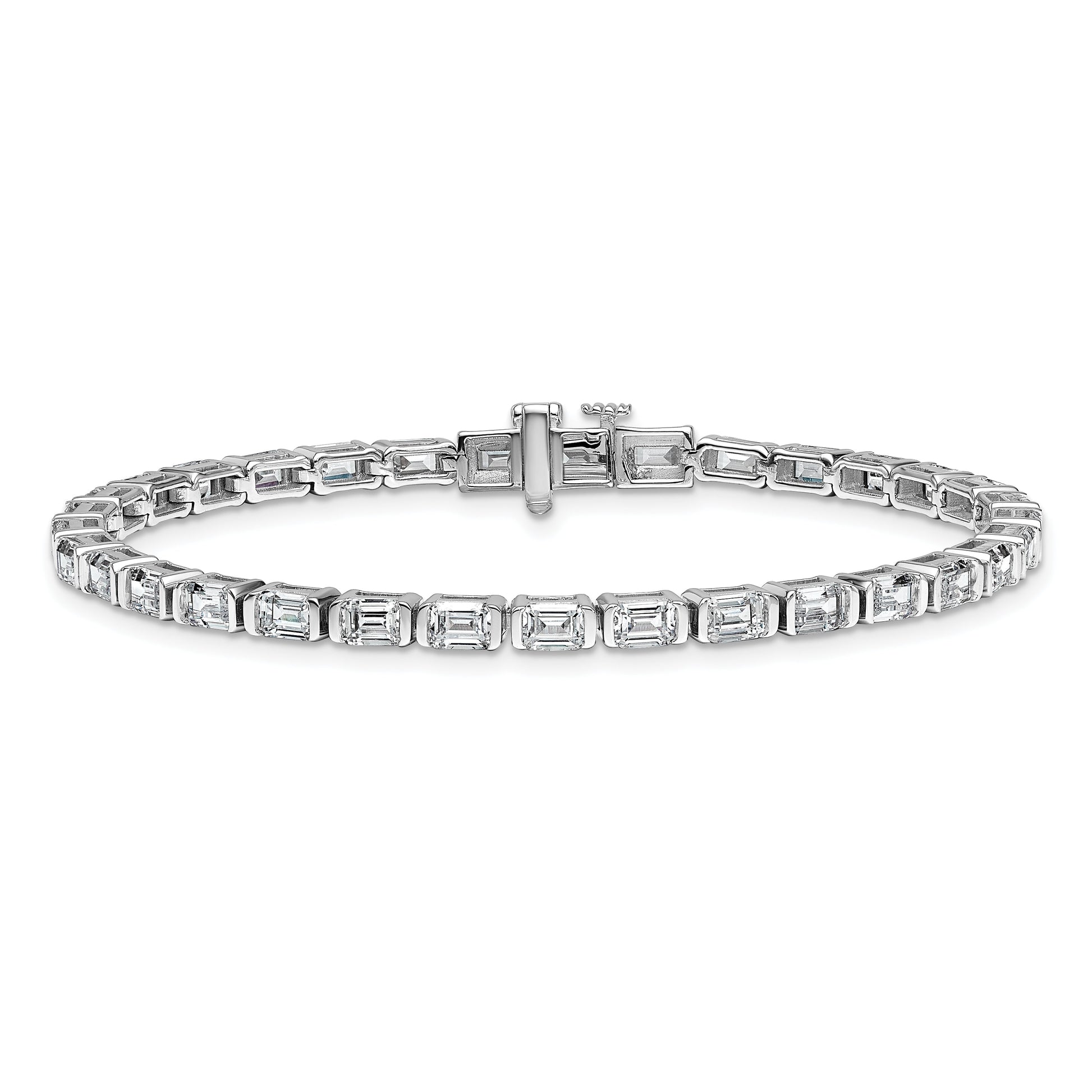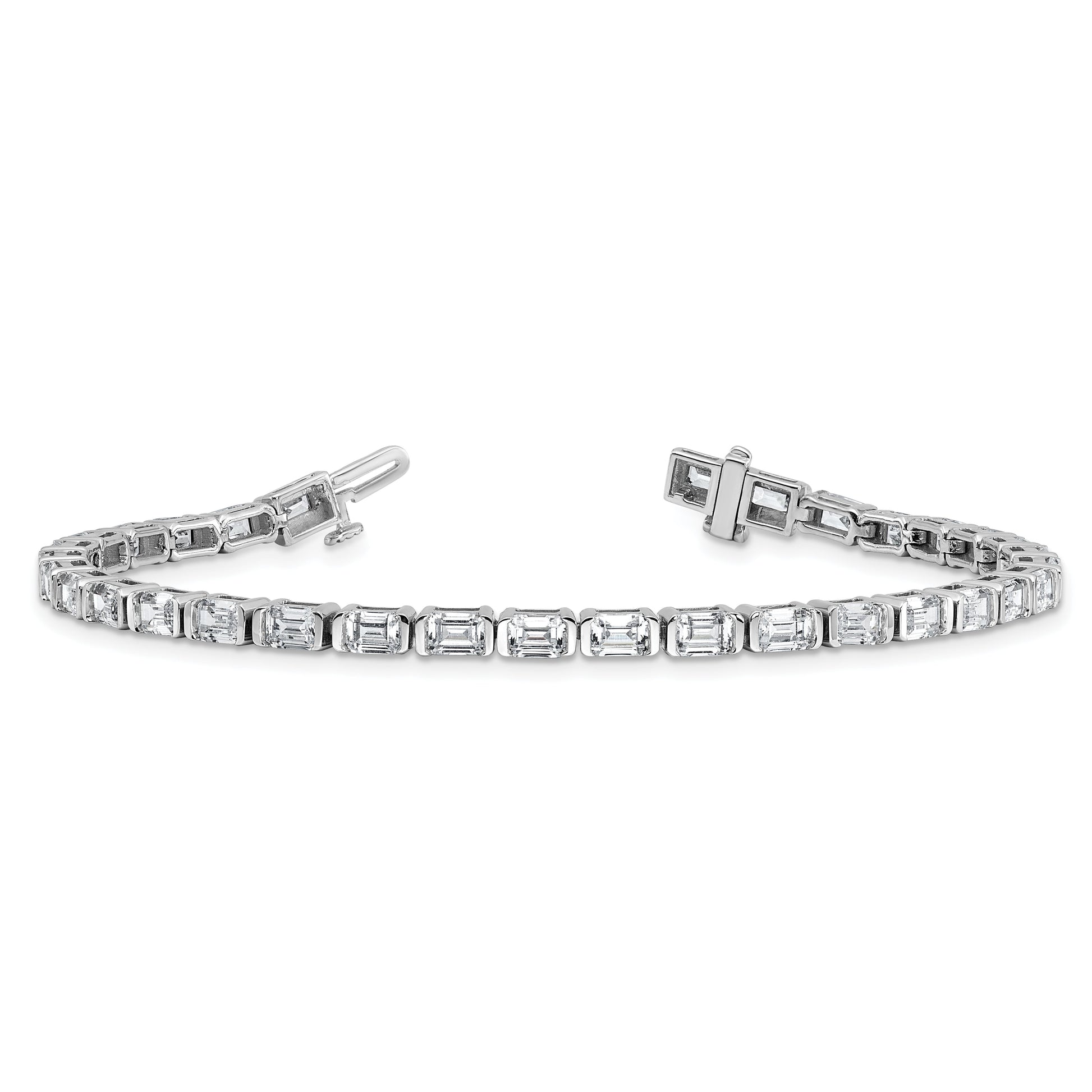 Add a sparkle to your style with the 14K White Gold 7 1/2 Carat Certified Lab Grown Diamond Vs/Si+ G+ Emerald Bezel Set Tennis Bracelet. Crafted from pure 14K white gold with a rhodium finish, this bracelet combines elegance and strength. The bezel setting features stunning lab-grown diamonds with VS/Si+ clarity and G+ color, ensuring bright brilliance. The 7 1/2 carats of diamonds make this piece a showstopper. Perfect for any occasion, the tennis bracelet provides a luxurious look that lasts. The 14K White Gold 7 1/2 Carat Certified Lab Grown Diamond Vs/Si+ G+ Emerald Bezel Set Tennis Bracelet elevates your jewelry game with style and grace.