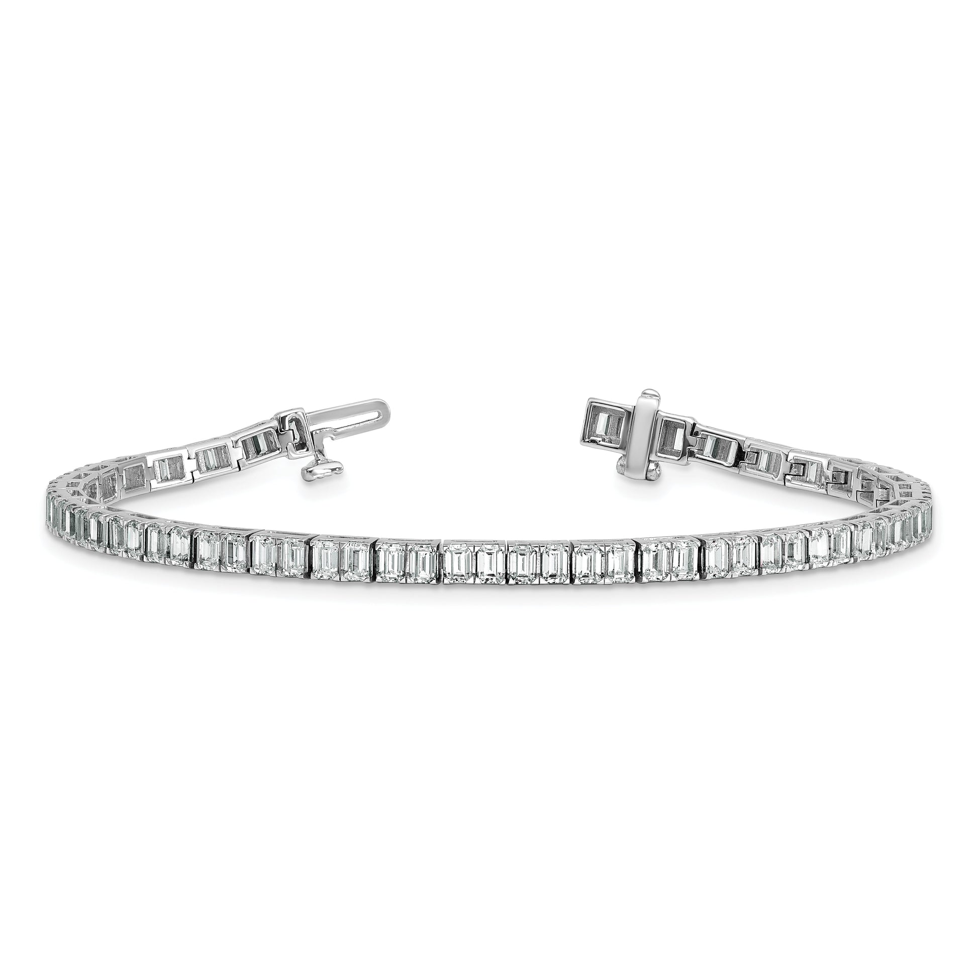Introducing the stunning 14K White Gold 7 Carat Certified Lab Grown Diamond Vs/Si+ G+ Emerald Bezel Set Tennis Bracelet. This bracelet showcases a sleek design with a row of brilliant lab-grown diamonds, each one carefully selected for high clarity and sparkle. The 14K white gold setting is coated with rhodium for extra shine and durability. Its bezel setting keeps the diamonds secure and adds a modern touch. Perfect for any occasion, the 14K White Gold 7 Carat Certified Lab Grown Diamond_vs/Si+ G+ Emerald Bezel Set Tennis Bracelet is a chic piece that combines style and value.