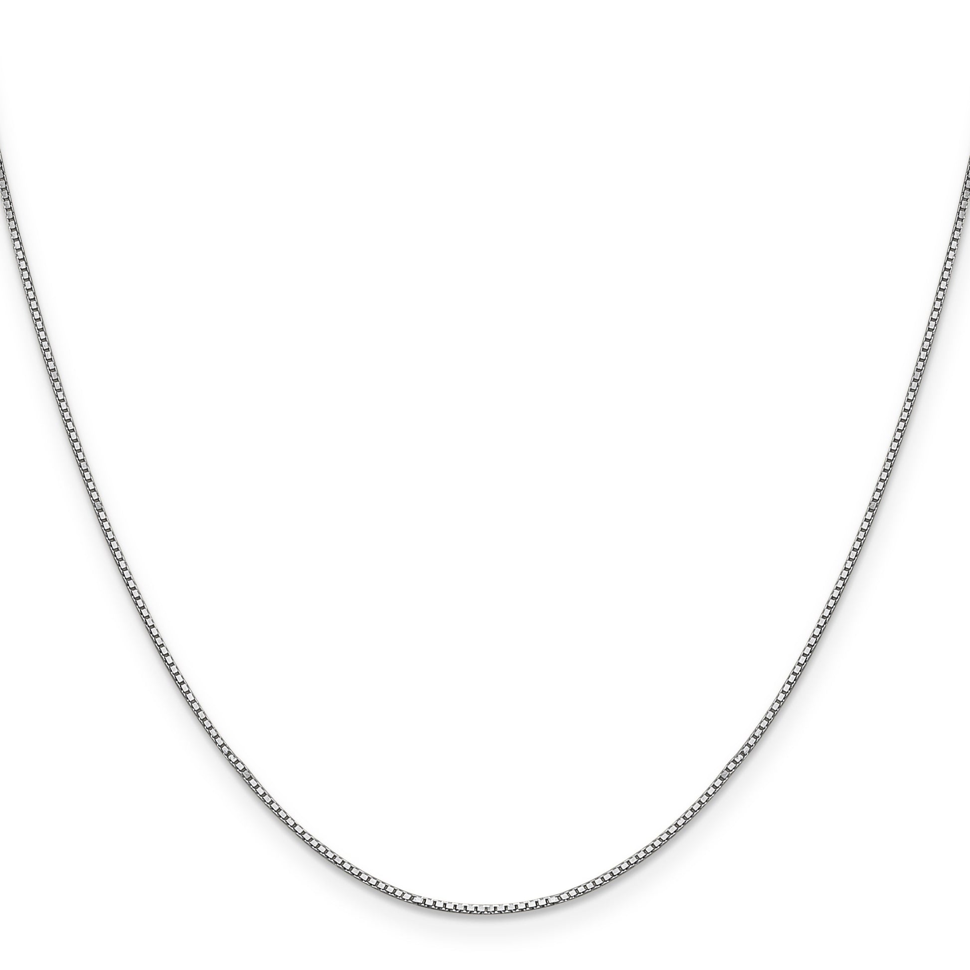 The 14K White Gold 14K .9mm Box Chain is a sleek addition to any jewelry collection. Crafted from high-quality 14K white gold, it features a polished finish that adds shine and sophistication. The chain measures 18 inches, making it perfect for layering or wearing alone. Its sturdy lobster clasp ensures secure wear. With a solid design and machine-made precision, this chain offers durability and style. The 14K White Gold 14K .9mm Box Chain is durable, eye-catching, and versatile. It’s an ideal piece to elevate your look, and with a lifetime guarantee, it’s built to last.